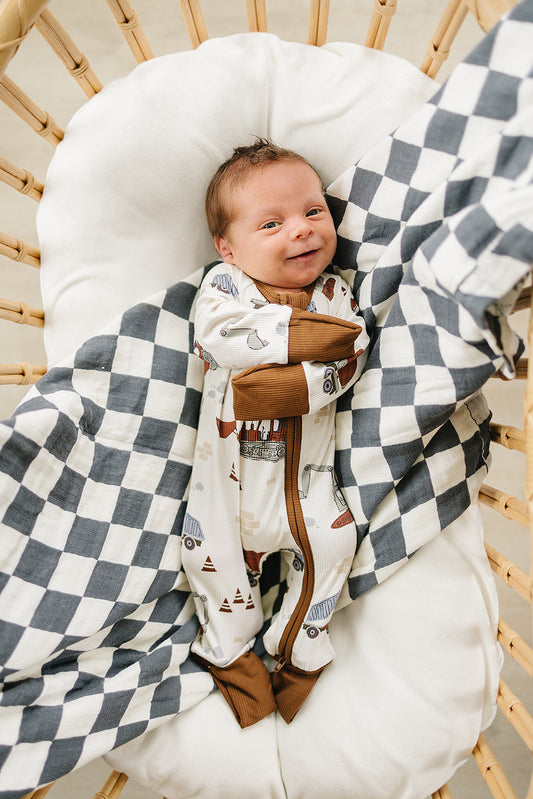 Construction Trucks Ribbed Bamboo Fleece Quilt