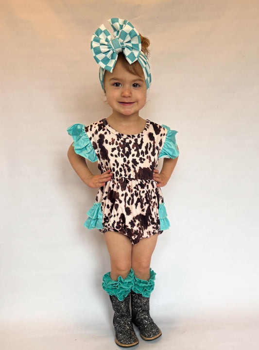 Sold outCow Print With Mint Ruffles Romper