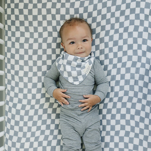 Sold outDusty Blue Wavy Checkered Muslin Bib