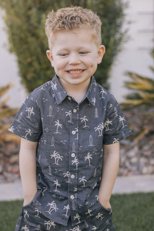 Navy Surfer Linen Button Up Shirt