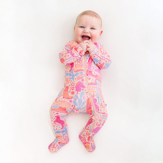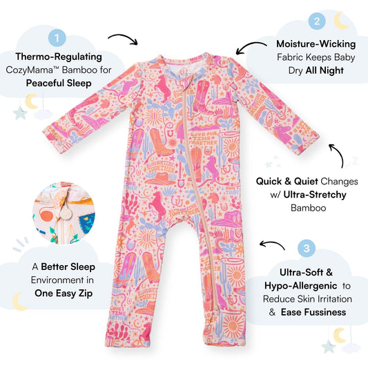 Saddle Up | Bamboo Footie Onesie Sleeper | "I Love Our Time Together" | Thermo-Regulating, Double Zipper, 4-Way Stretch