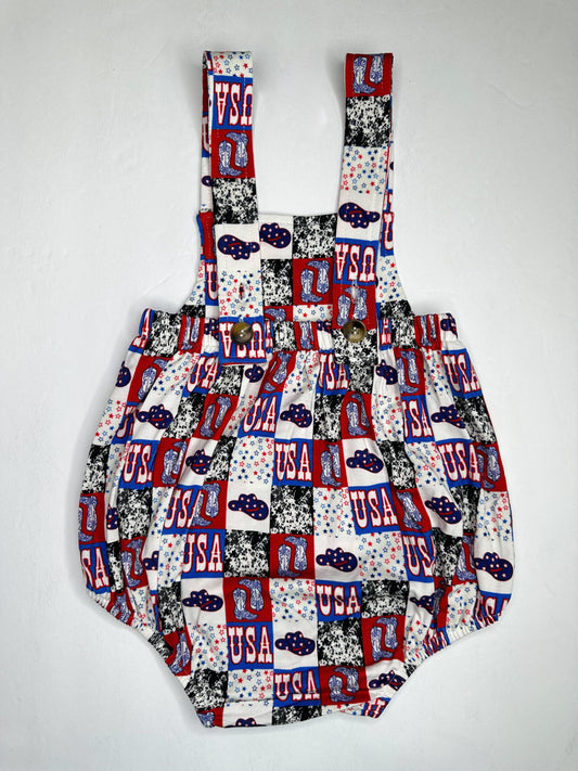 Western USA Suspender Bamboo Romper