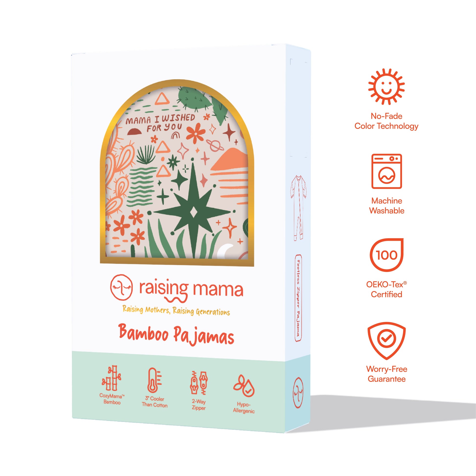 Desert Cactus Vibes | Bamboo Footless Onesie Romper | "Mama, I Wished for You" | Thermo-Regulating, Double Zipper, 4-Way Stretch