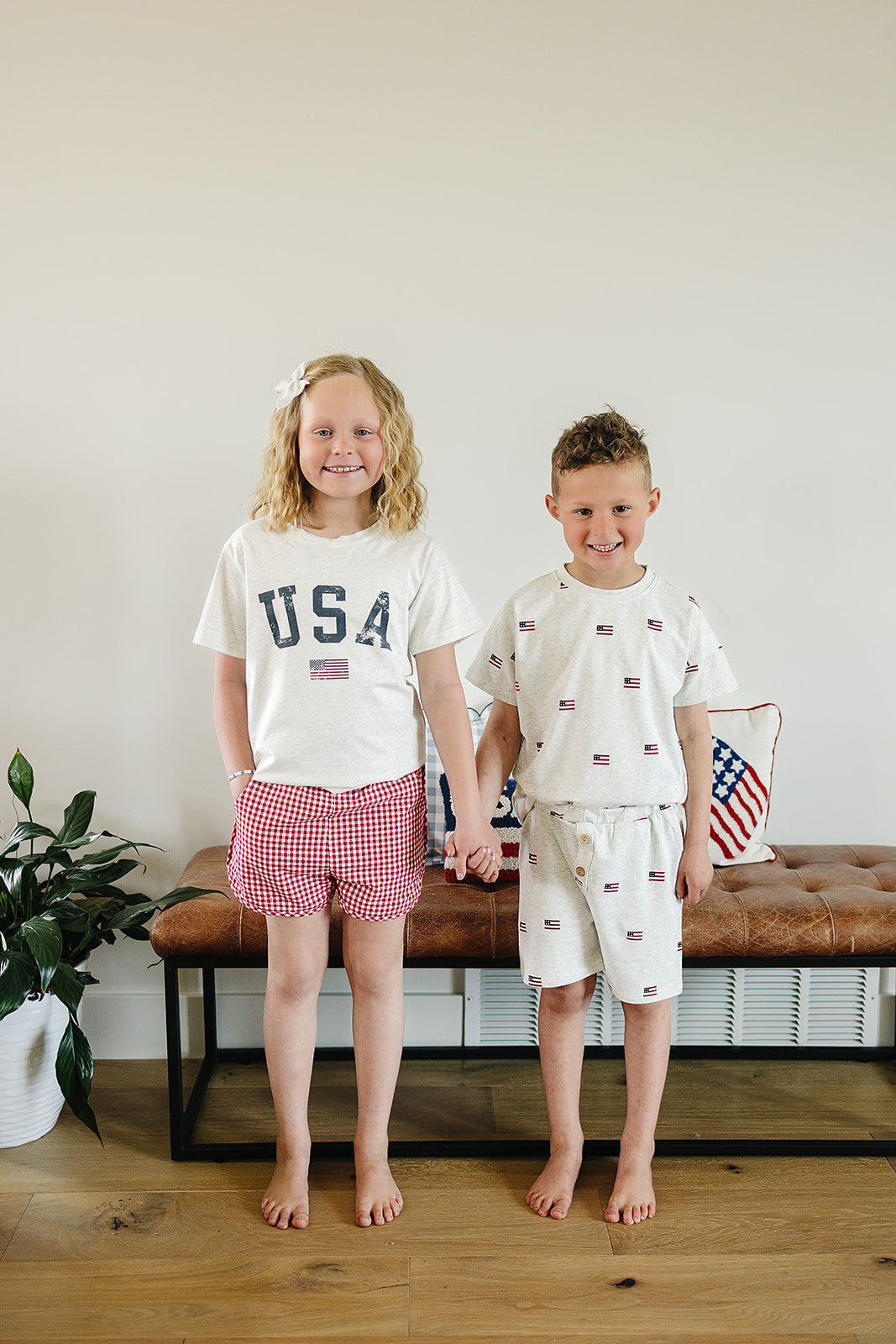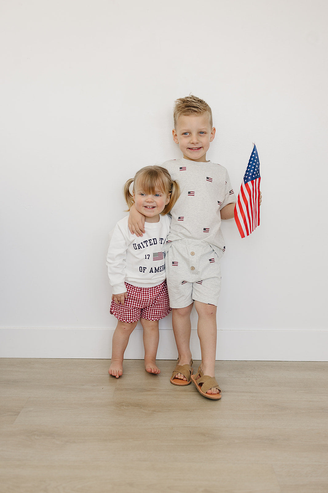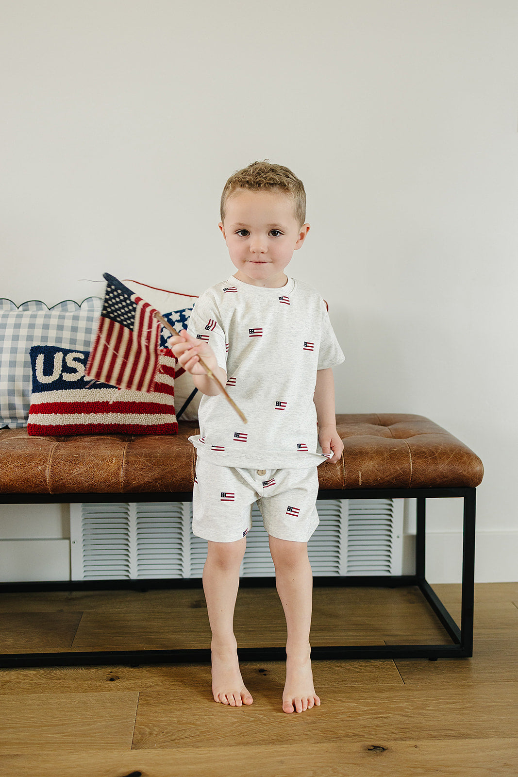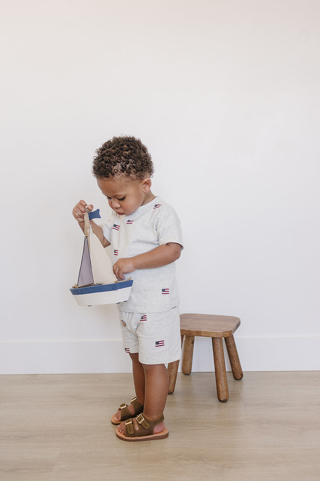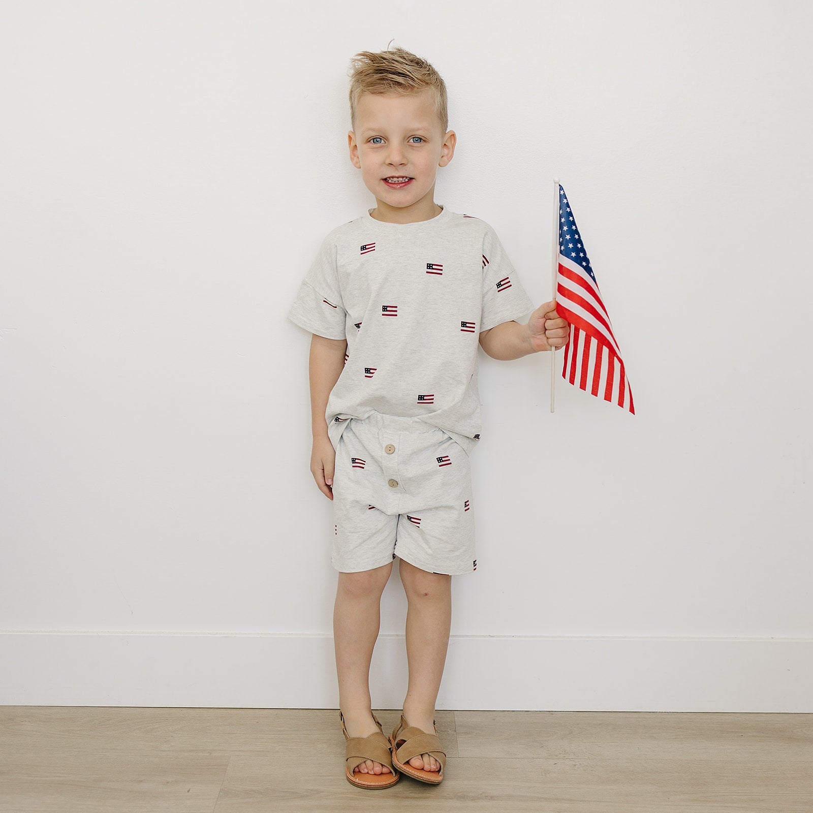 Dress your little one in effortless style with our Flag Button Short Set, a perfectly coordinated outfit designed for comfort, versatility, and all-day play. Featuring a top with a timeless flag print and matching soft, breathable shorts, this set is ideal for warm-weather outings, summer celebrations, and everyday adventures.