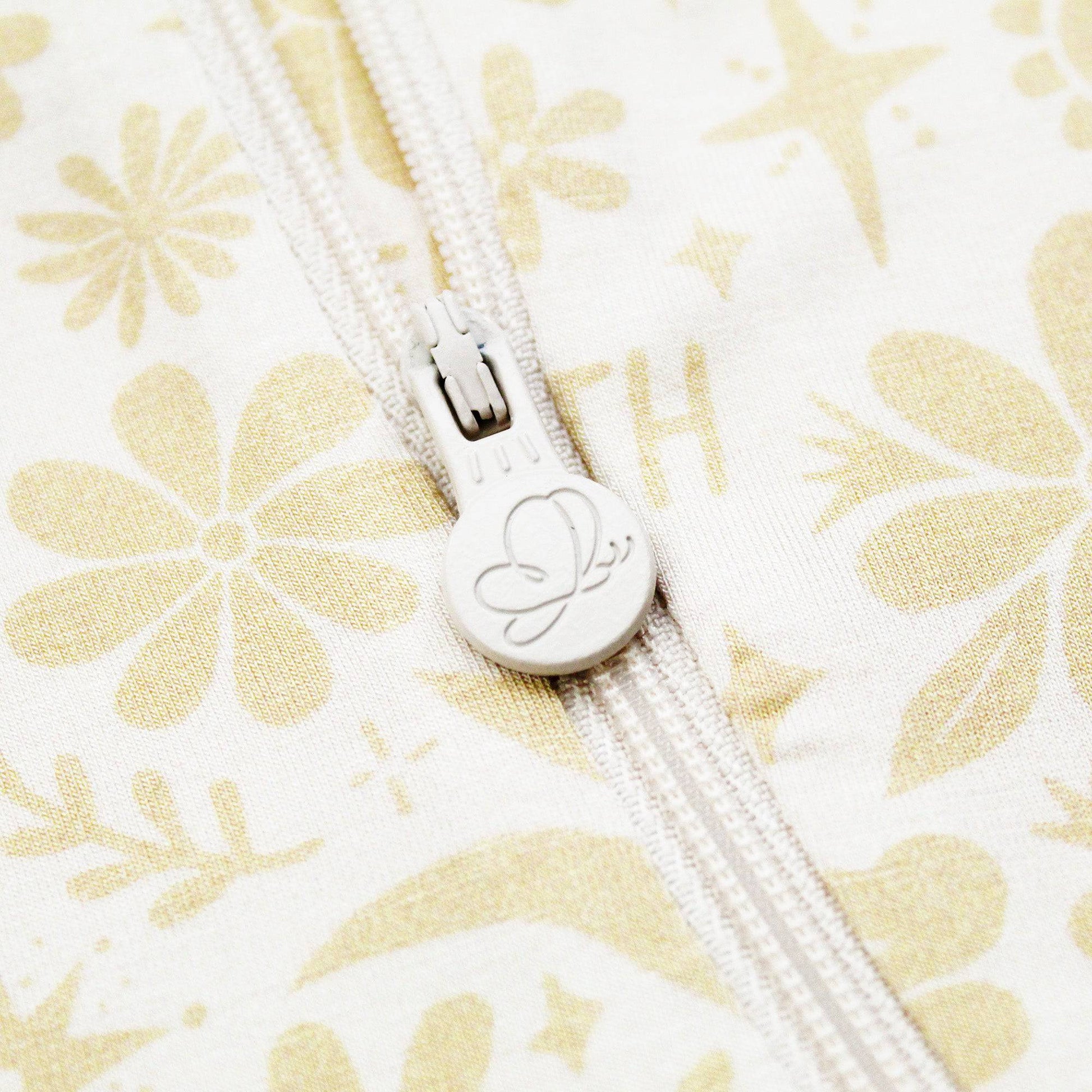 Outfitted with signature Raising Mama® "mama-at-peace" footie grips, this bamboo baby sleeper has elastic backing on the footies for a snug fit, and will hug those baby chubs for extra cozy snuggles. Sizes NB and 0-3M have warm fold-over mittens which help reduce accidental scratches.