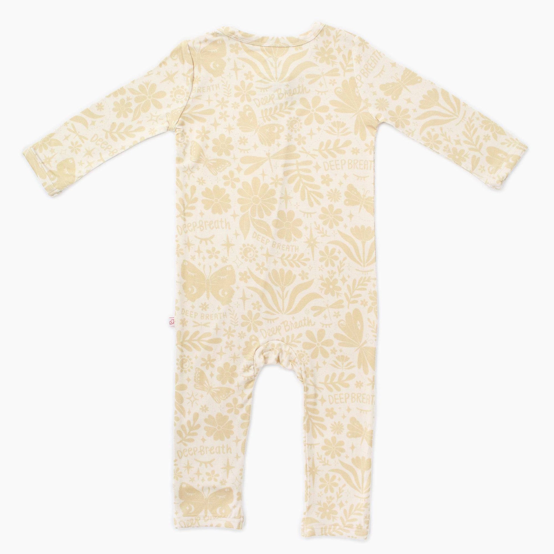 Om Baby Beige | Bamboo Footless Onesie Romper | "Deep Breath" | Thermo-Regulating, Double Zipper, 4-Way Stretch