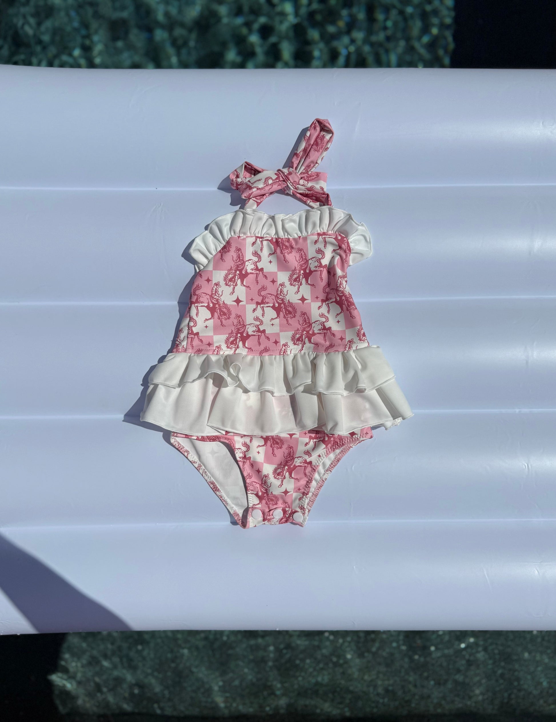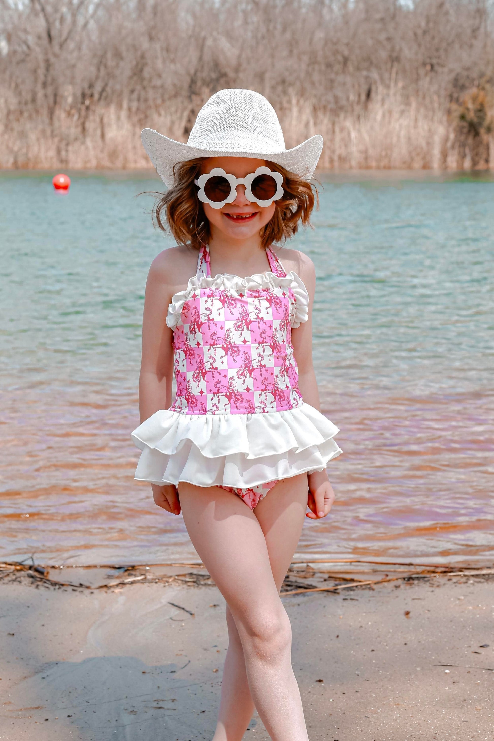 Pink Buckin’ Broncs Ruffled Swim Suit