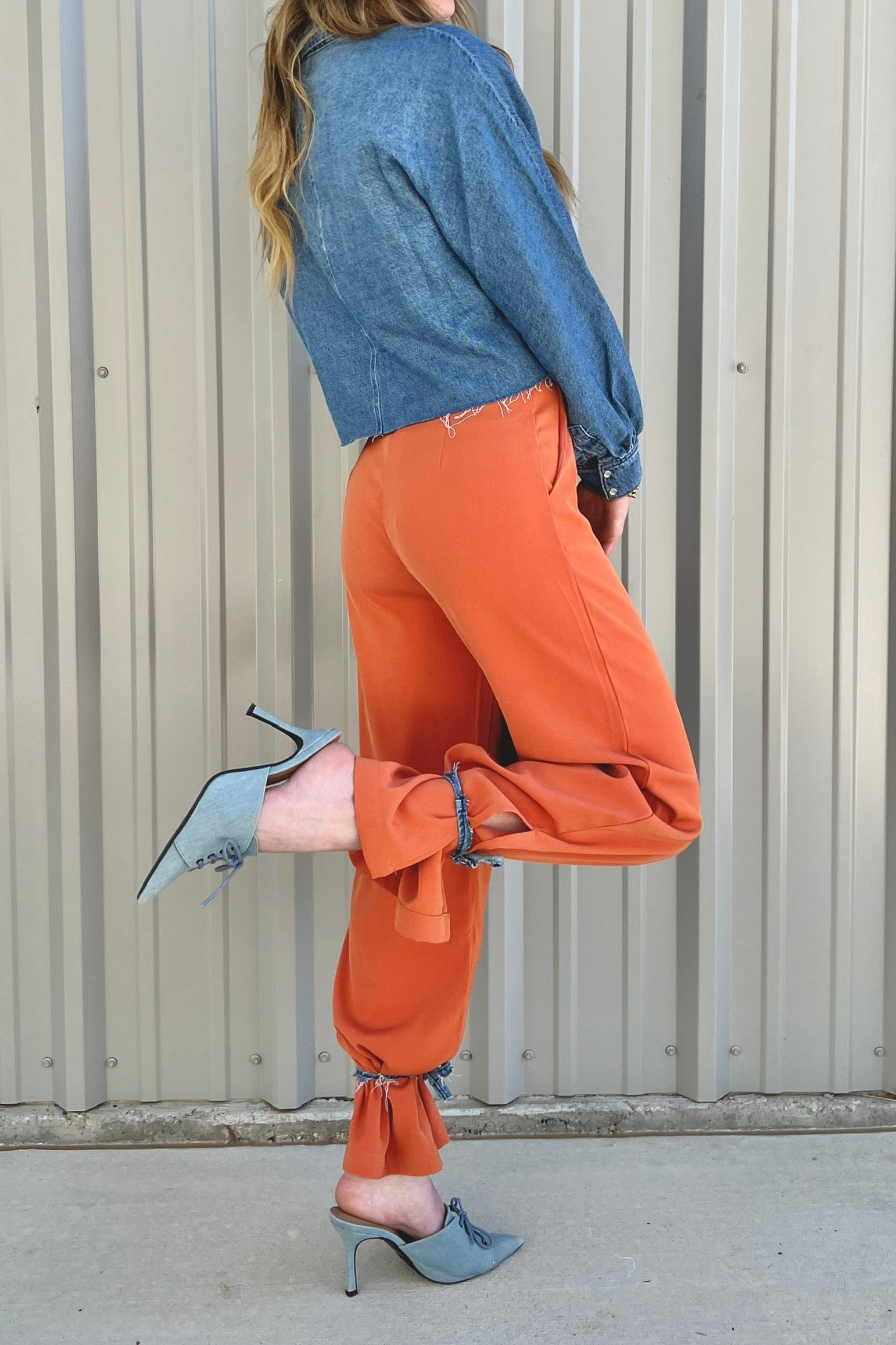 Side slits on the trouser legs create a fresh aesthetic and side insert pockets add to the relaxed fit.
