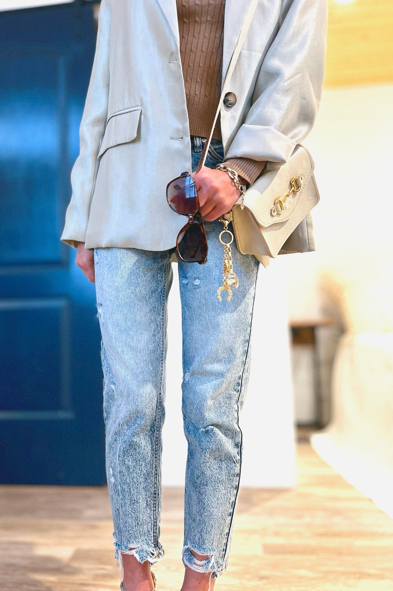 These high-rise mom jeans are tailored for petite frames with an ankle-length cut and the perfect amount of relaxed structure. Finished with a distressed hem for a lived-in edge, they’re the ultimate blend of laid-back and pulled-together.