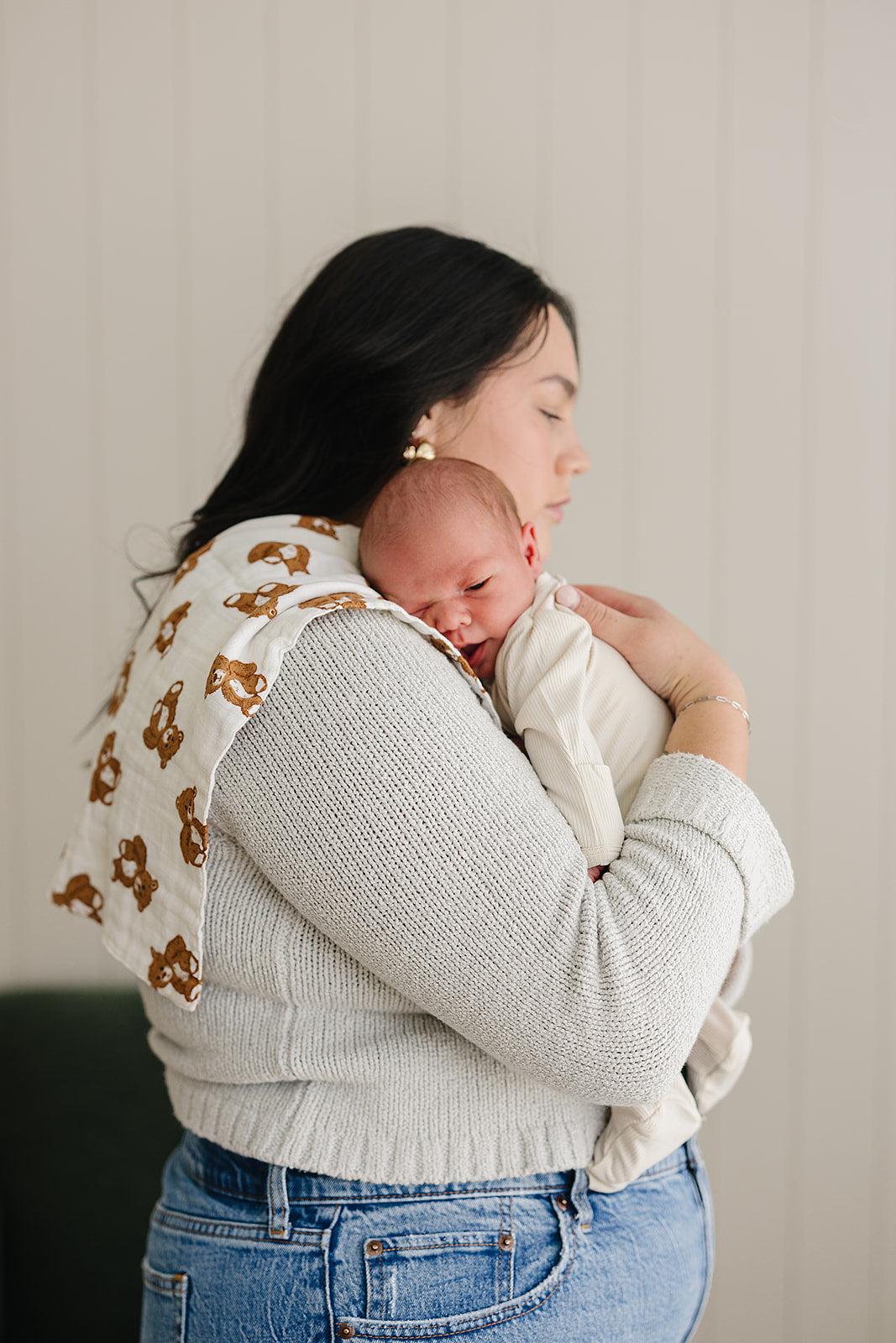 Introducing the Teddy Bear Burp Cloth by Mebie Baby, a must-have accessory for your little one's first year. Crafted from the same soft muslin fabric as our popular quilts, this burp cloth is not only stylish but also highly absorbent, ensuring fewer wardrobe changes for busy parents. Versatile and practical, our burp cloths can also double as a comforting lovey. Pair them with our muslin bibs, quilts, and swaddles to create a coordinated baby essentials collection. Make parenting a little easier and a lot more stylish with Mebie Baby's Teddy Bear Burp Cloth.