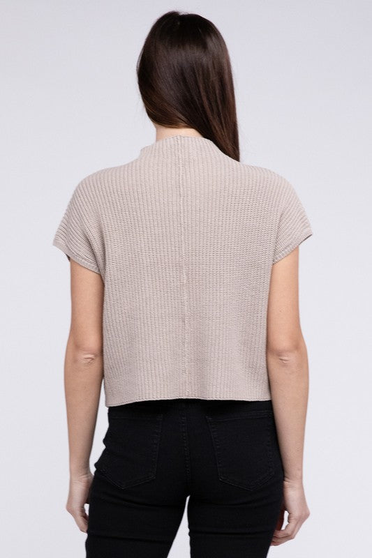 Elevate your winter wardrobe with our Mock Neck Short Sleeve Cropped Sweater - a pinnacle of quality and style. Crafted from the best-quality sweater material, this piece stands out with its low gauge heavyweight construction. The mock neck adds a touch of sophistication, and the dropped shoulder short sleeves provide a contemporary and relaxed vibe.