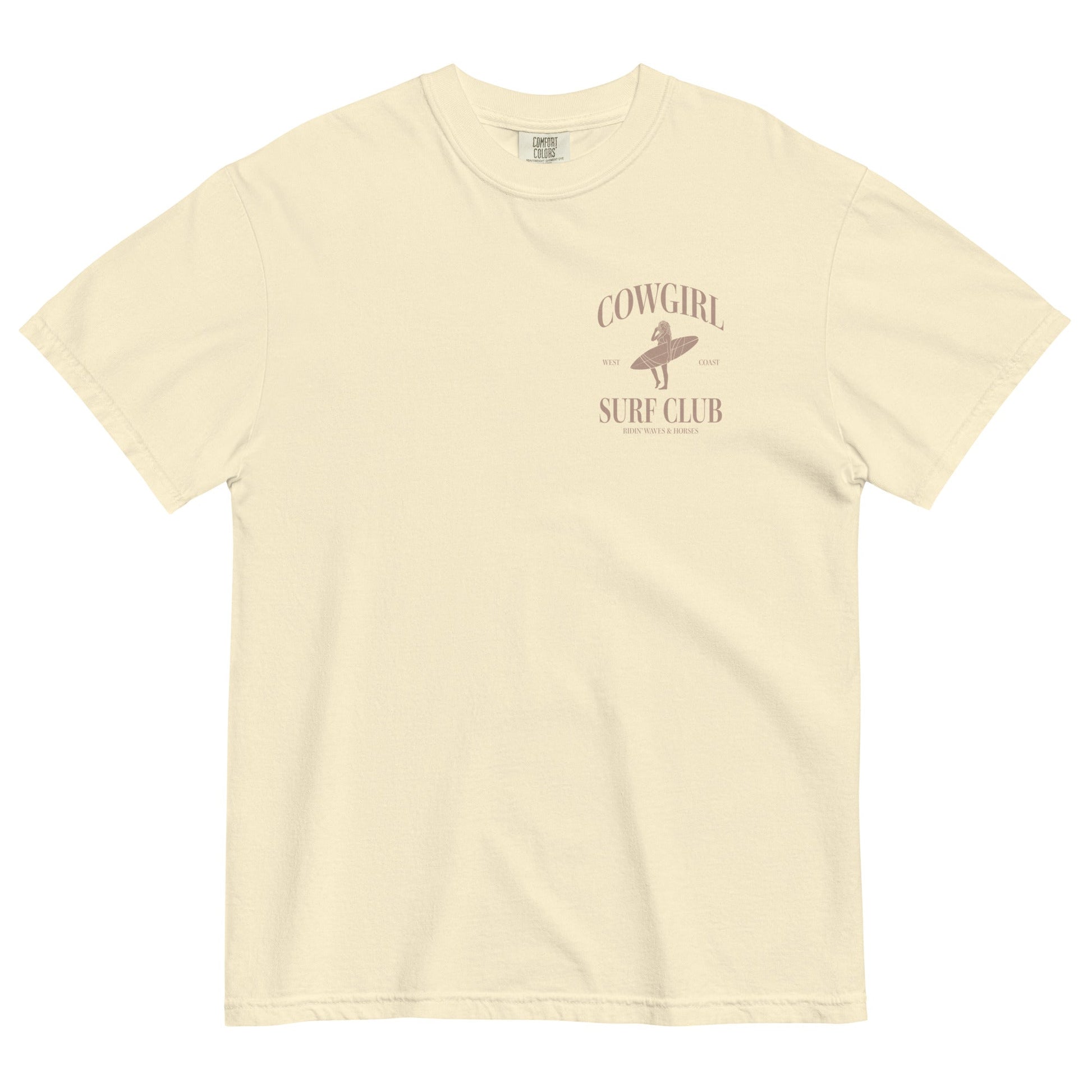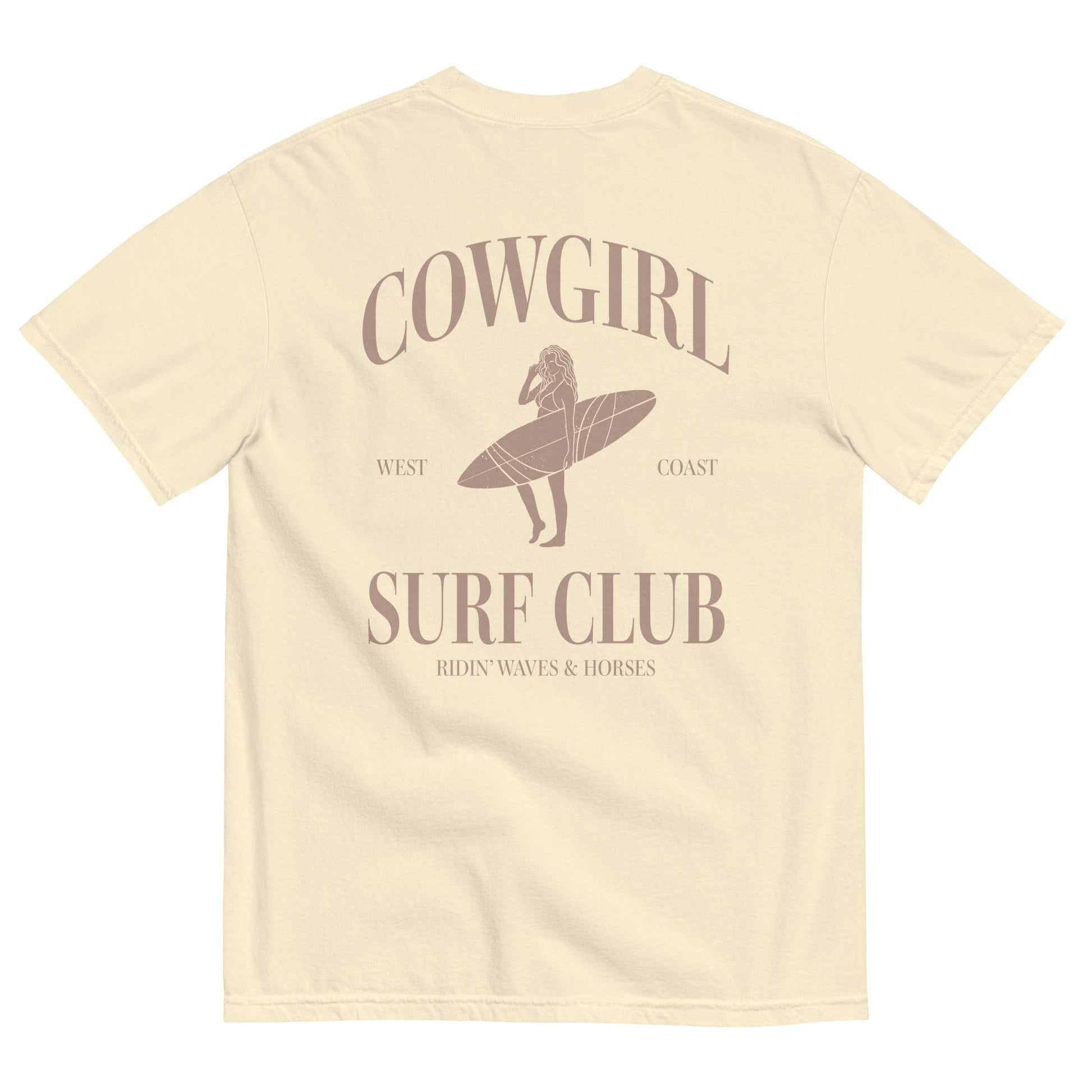 The Cowgirl Surf Club Tee in Ivory blends western charm with laid-back beach vibes. Featuring a retro graphic on a Comfort Colors tee, this relaxed-fit tee pairs perfectly with denim, sandy toes, and sunshine.