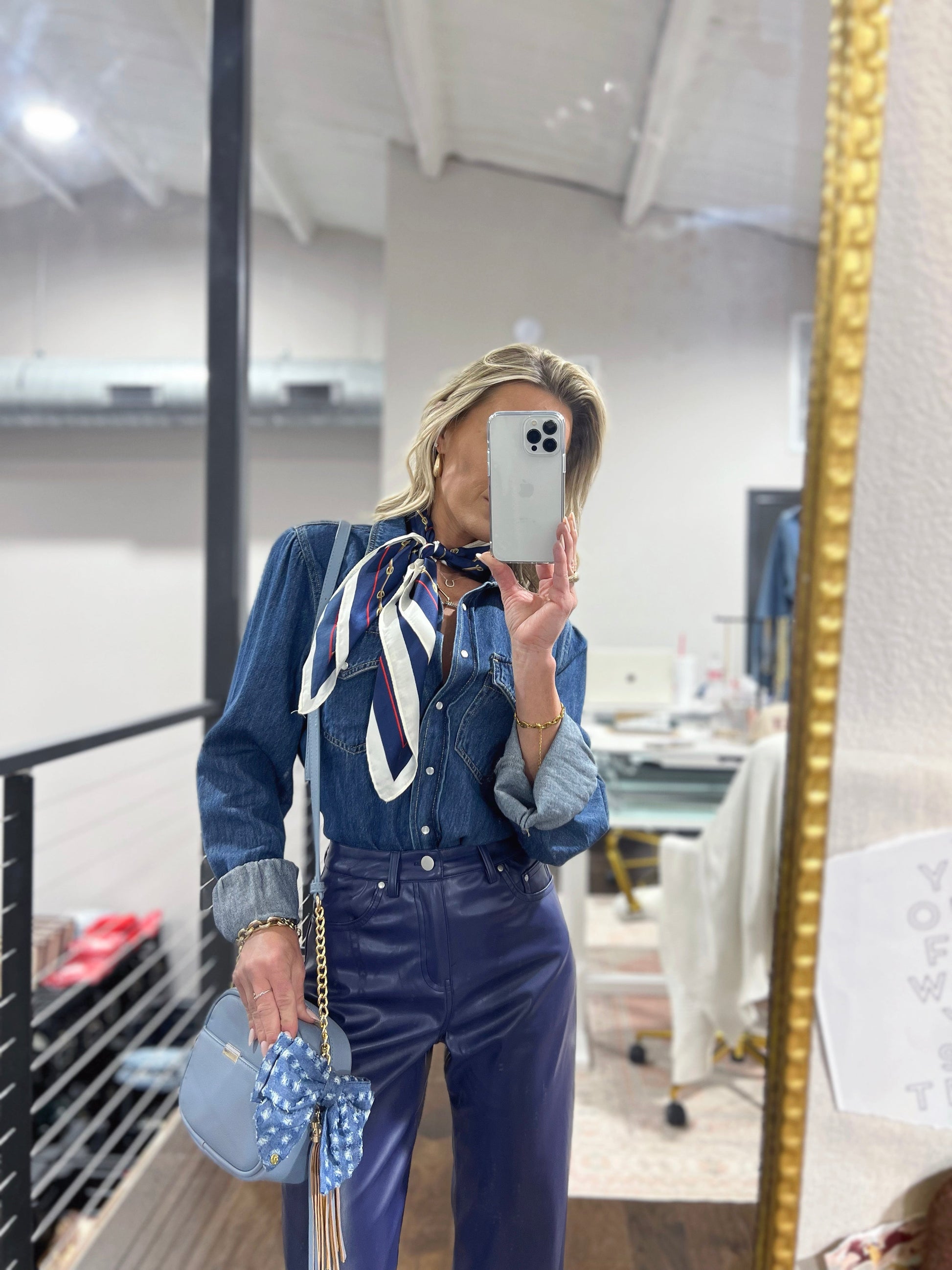 This chic Distressed Jean Bow Hair Clip adds a retro touch to any outfit. The distressed design makes it easy to dress up or down, perfect for any occasion.