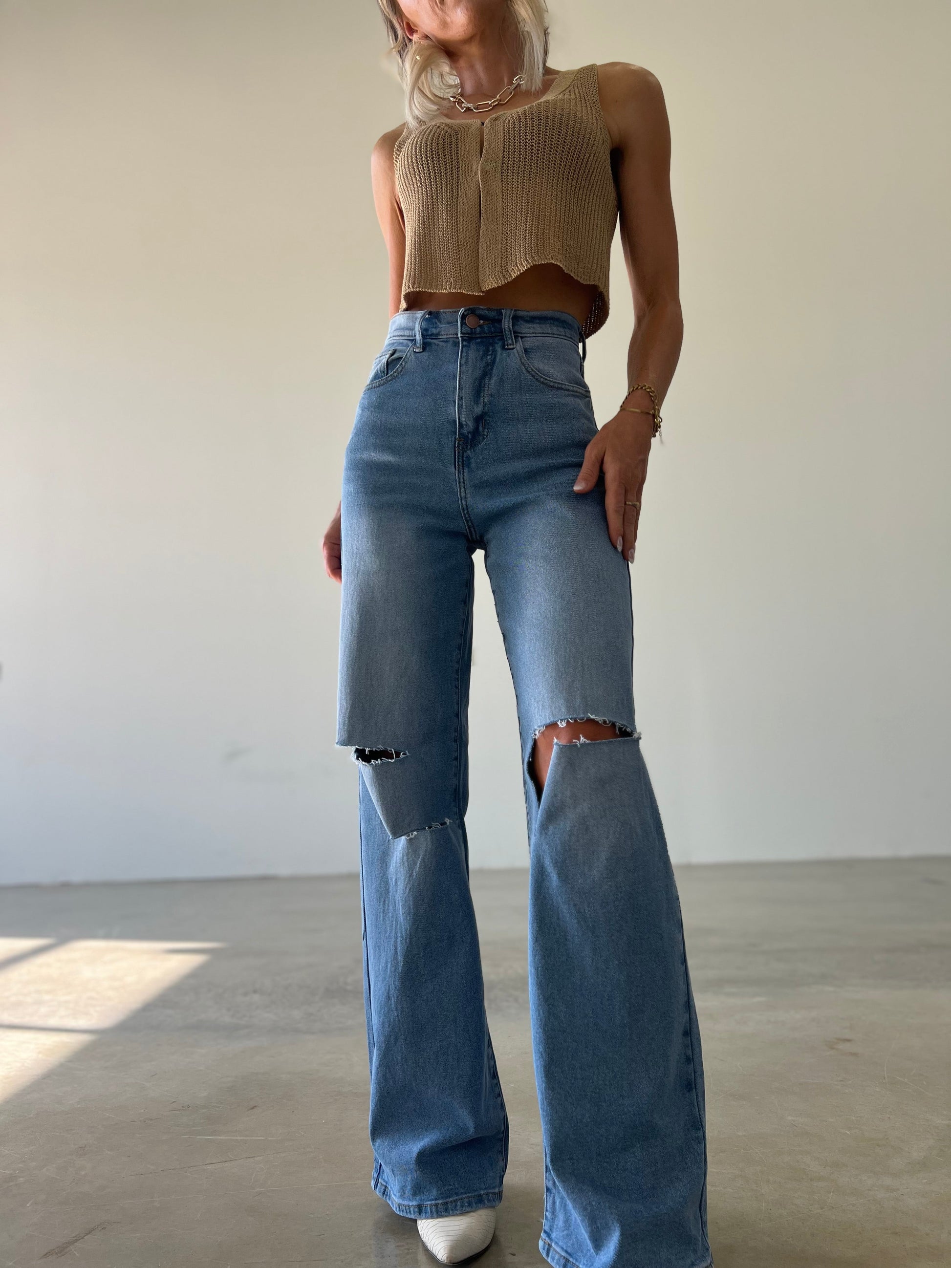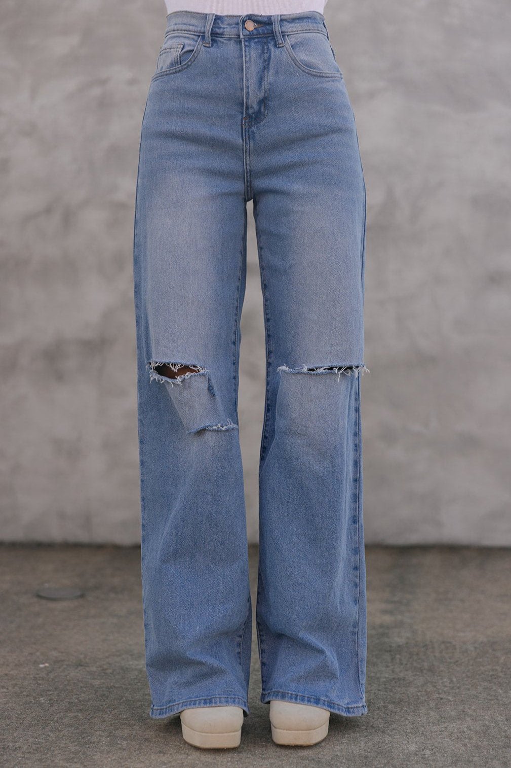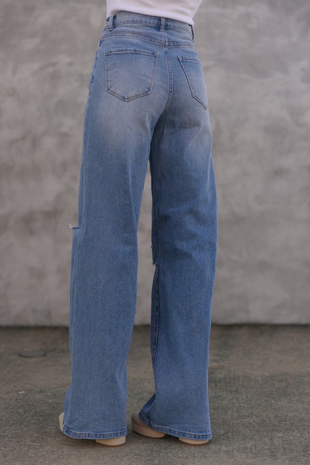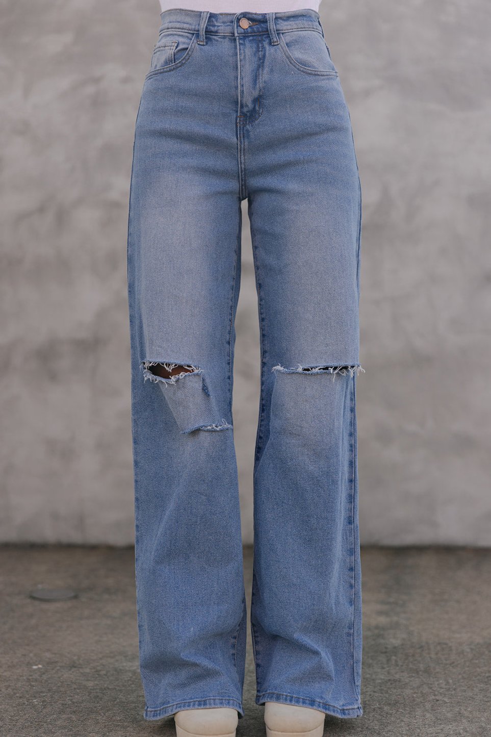 These distressed straight leg jeans feature a relaxed fit with just the right amount of edge. Designed for everyday styling, they’re the perfect mix of classic denim and laid-back attitude. Featuring a 35" inseam - they're tall girl friendly too.