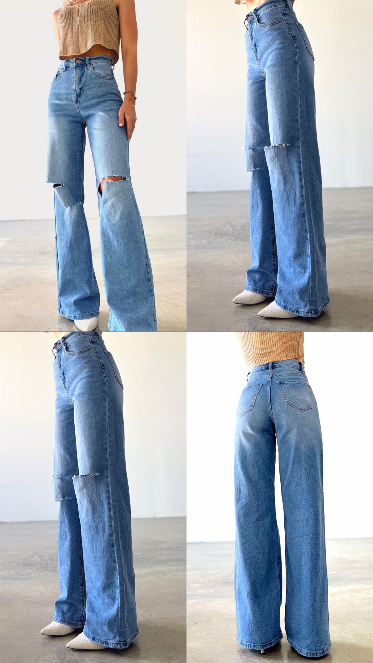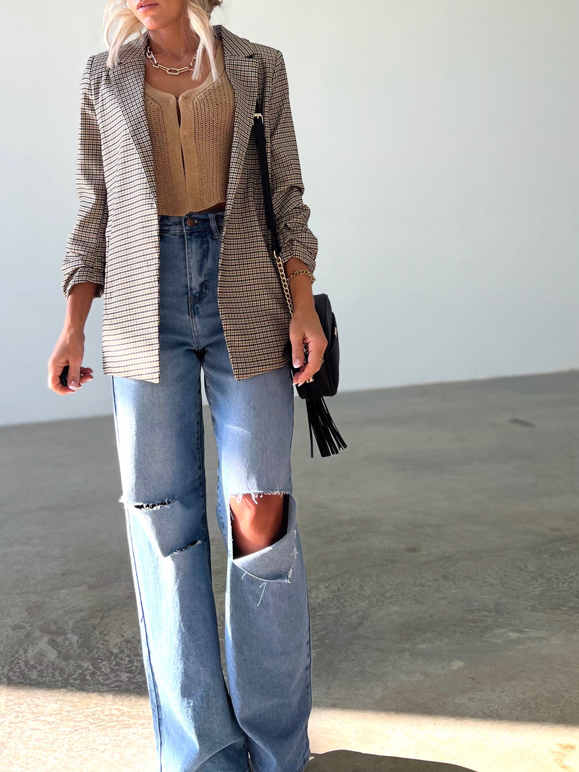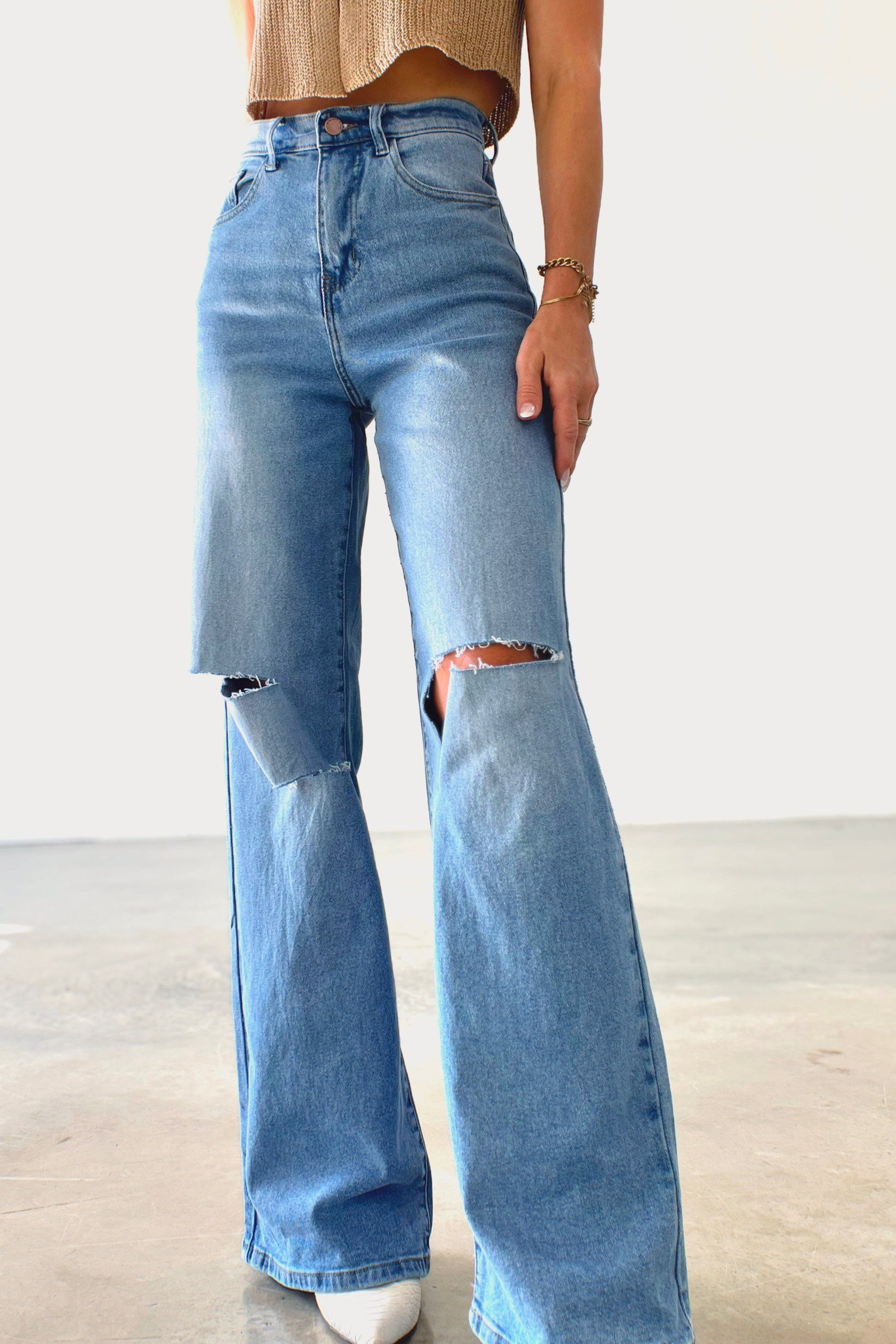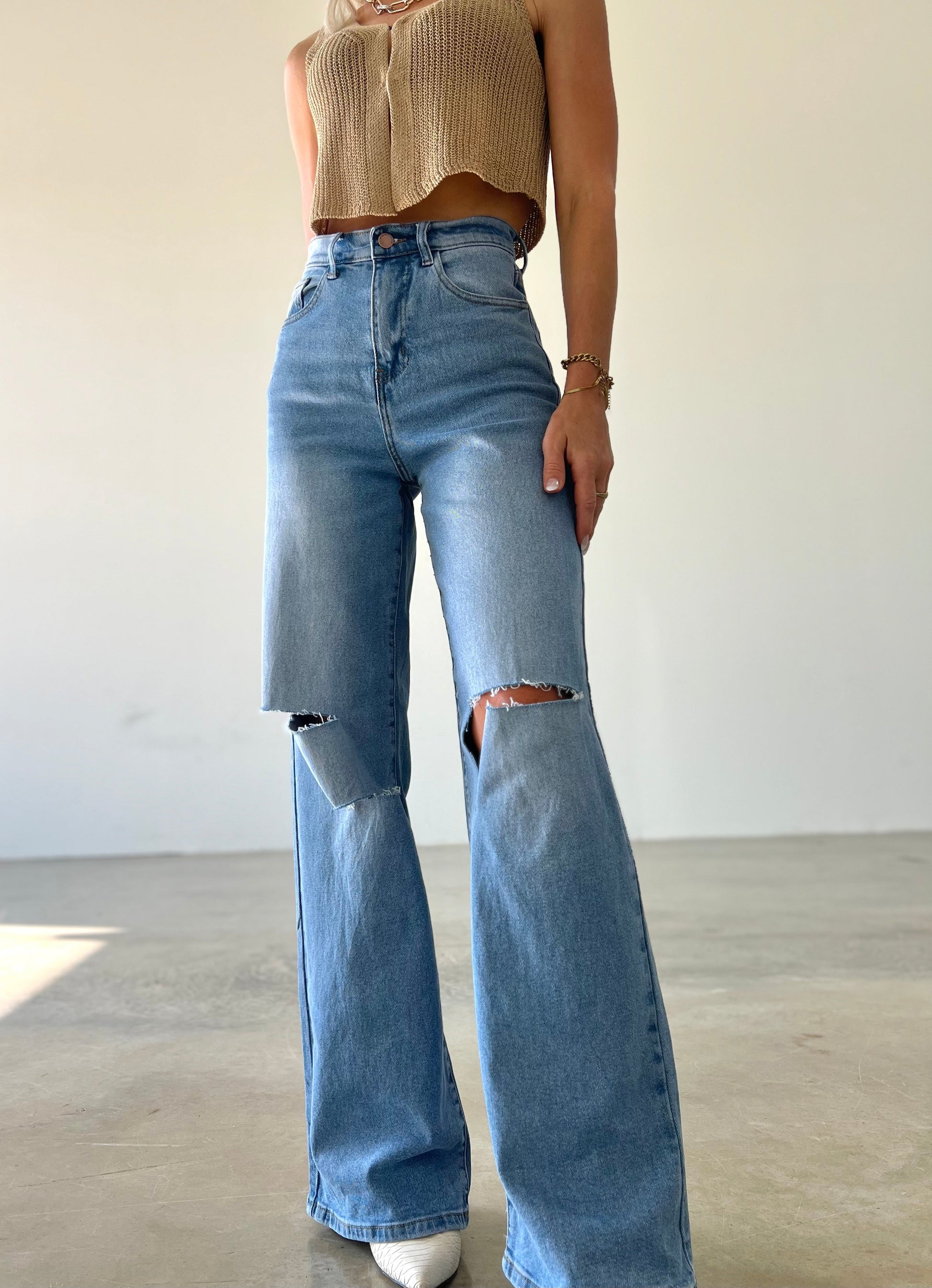 These distressed straight leg jeans feature a relaxed fit with just the right amount of edge. Designed for everyday styling, they’re the perfect mix of classic denim and laid-back attitude. Featuring a 35" inseam - they're tall girl friendly too.