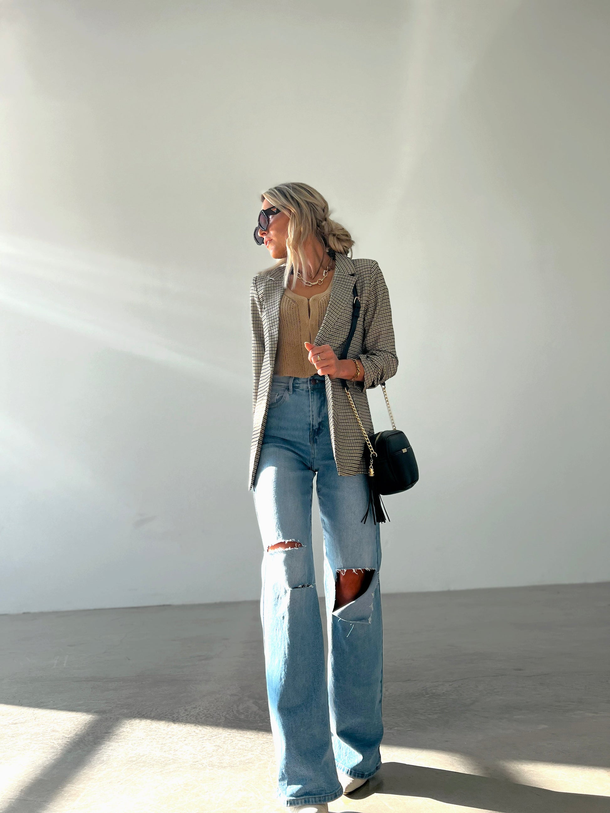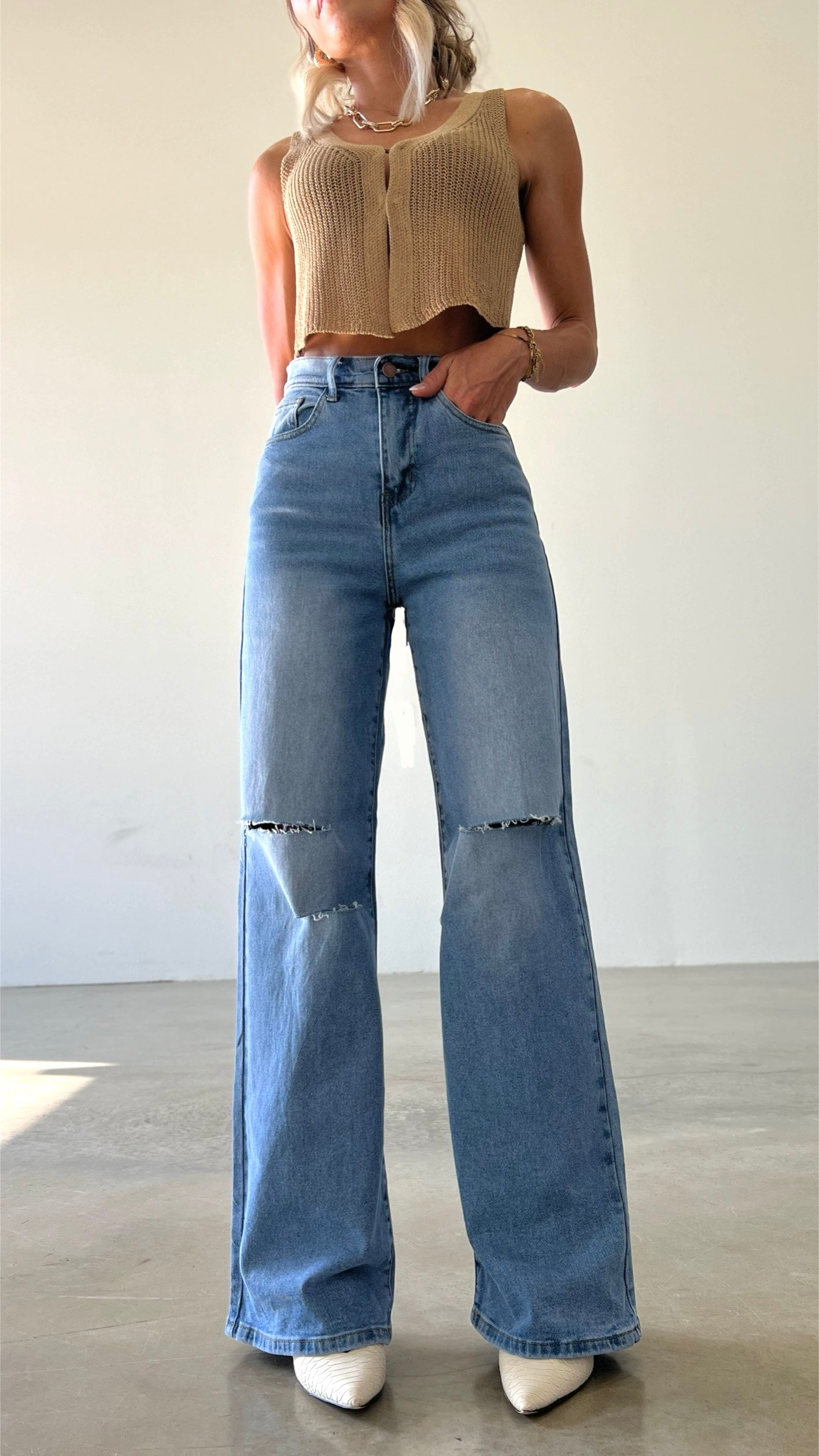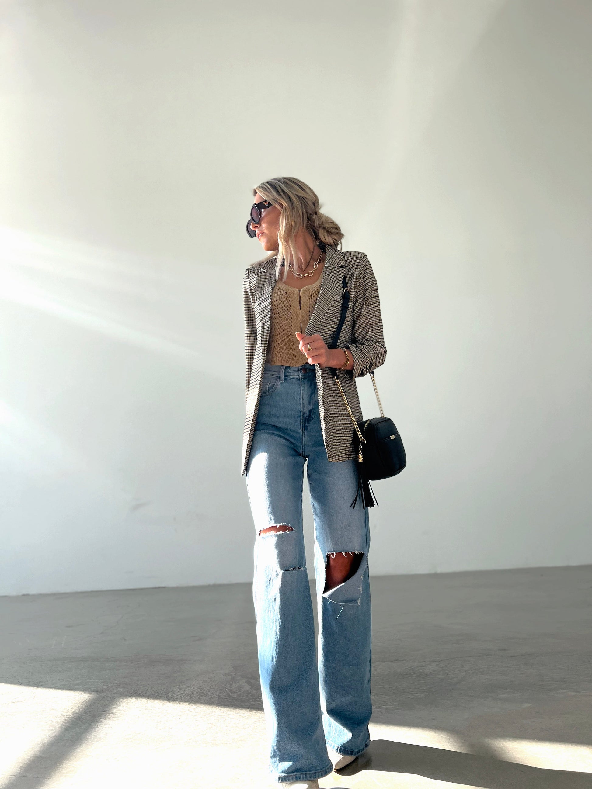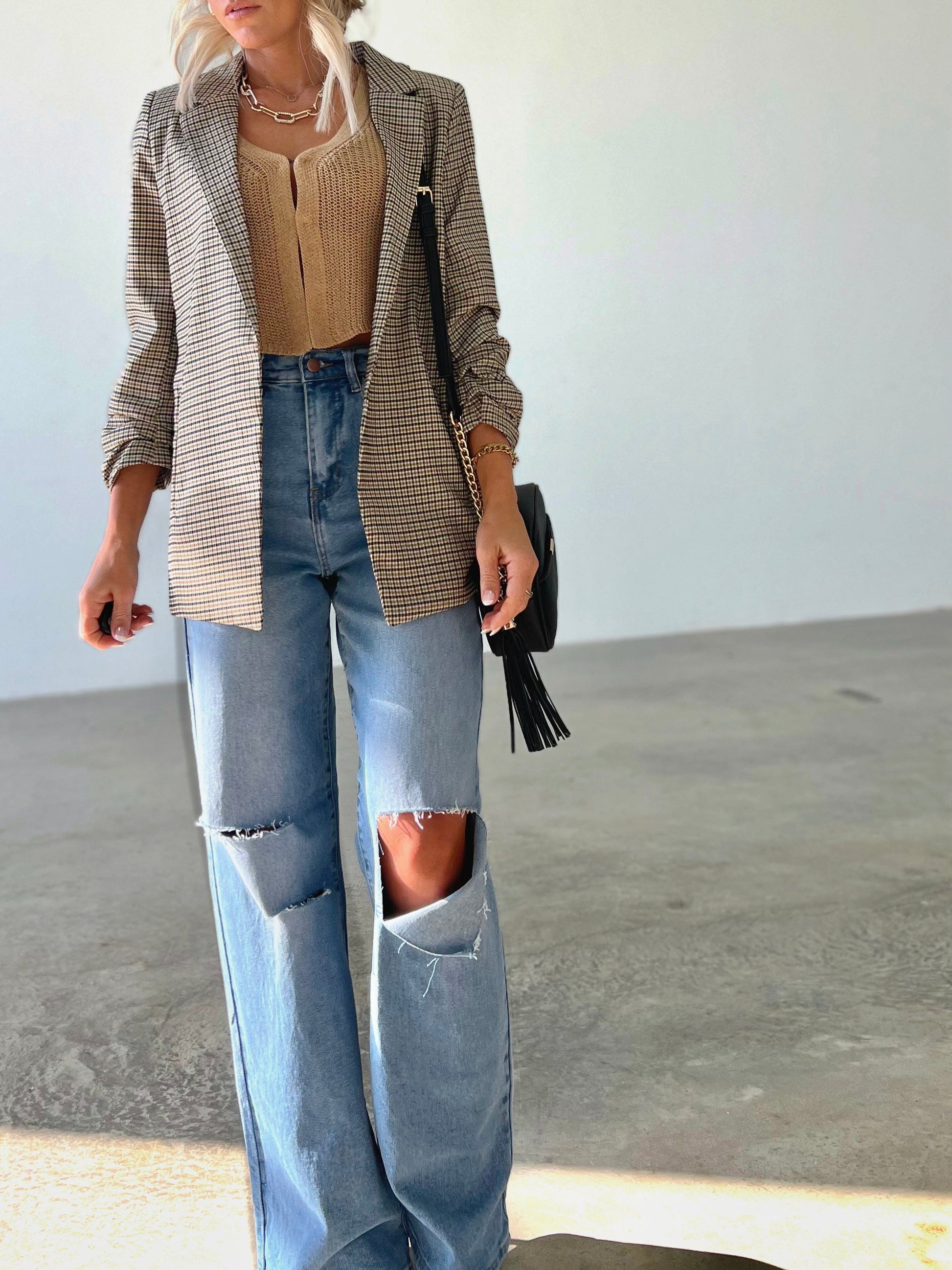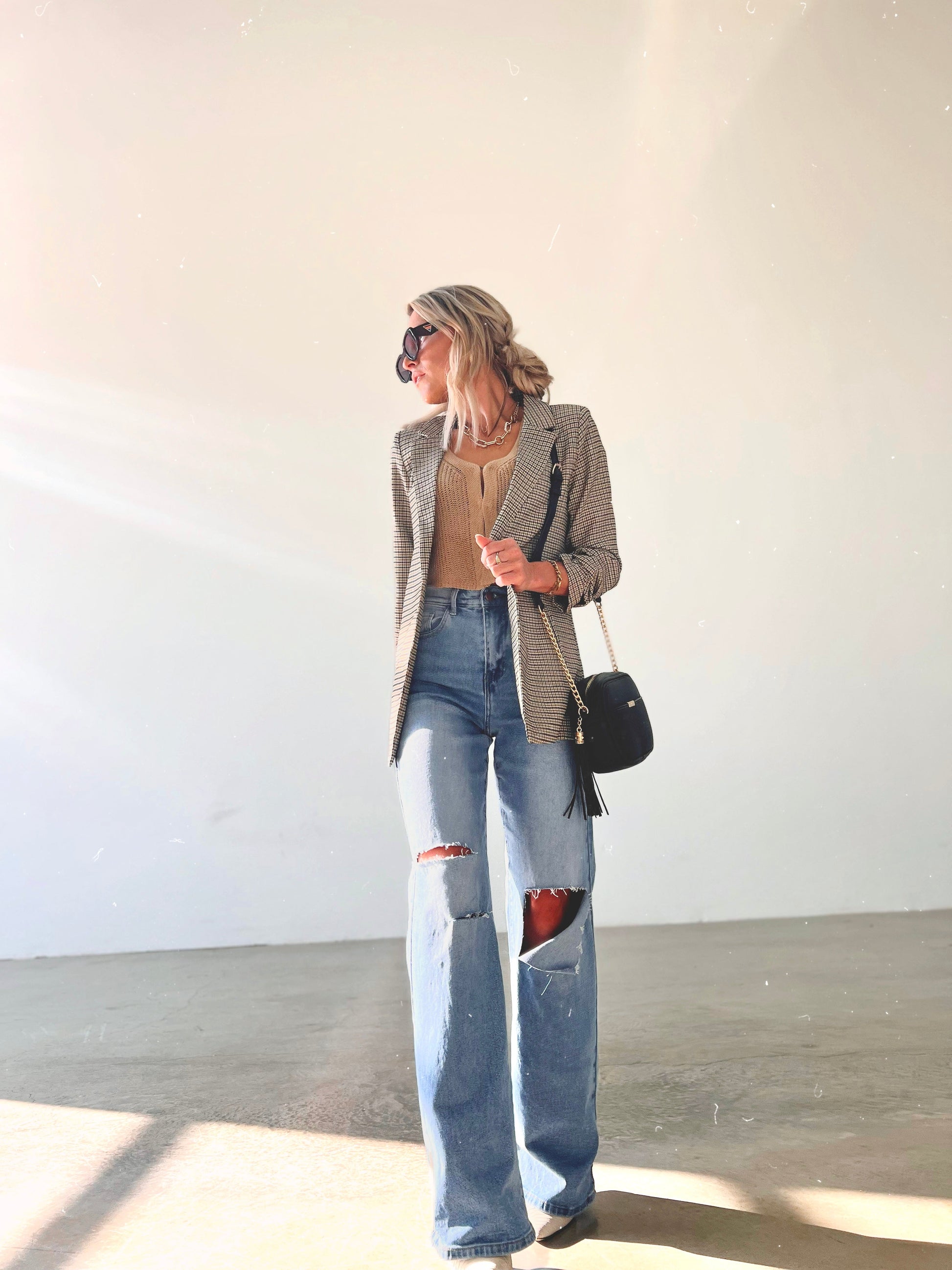 These distressed straight leg jeans feature a relaxed fit with just the right amount of edge. Designed for everyday styling, they’re the perfect mix of classic denim and laid-back attitude. Featuring a 35" inseam - they're tall girl friendly too.