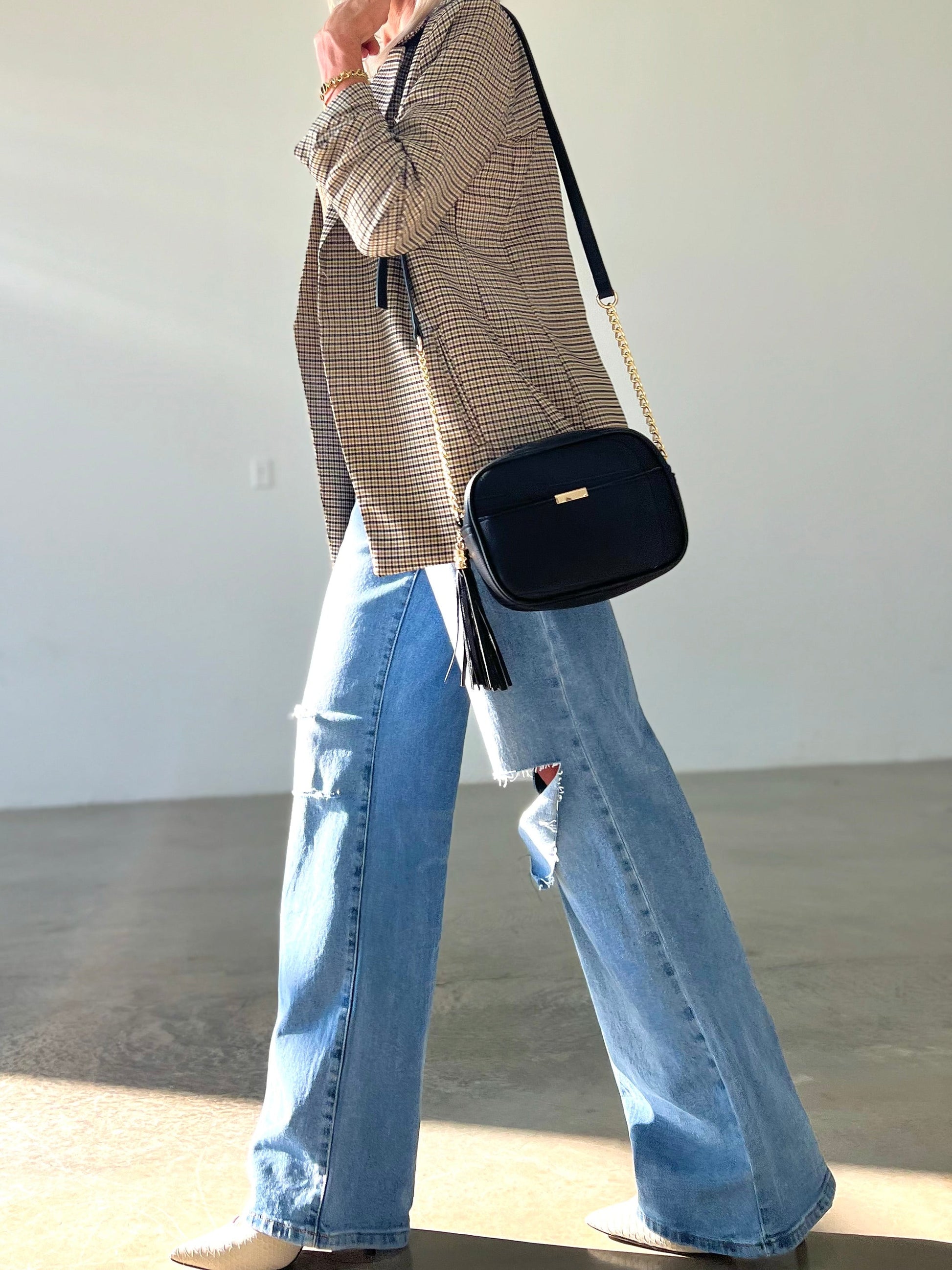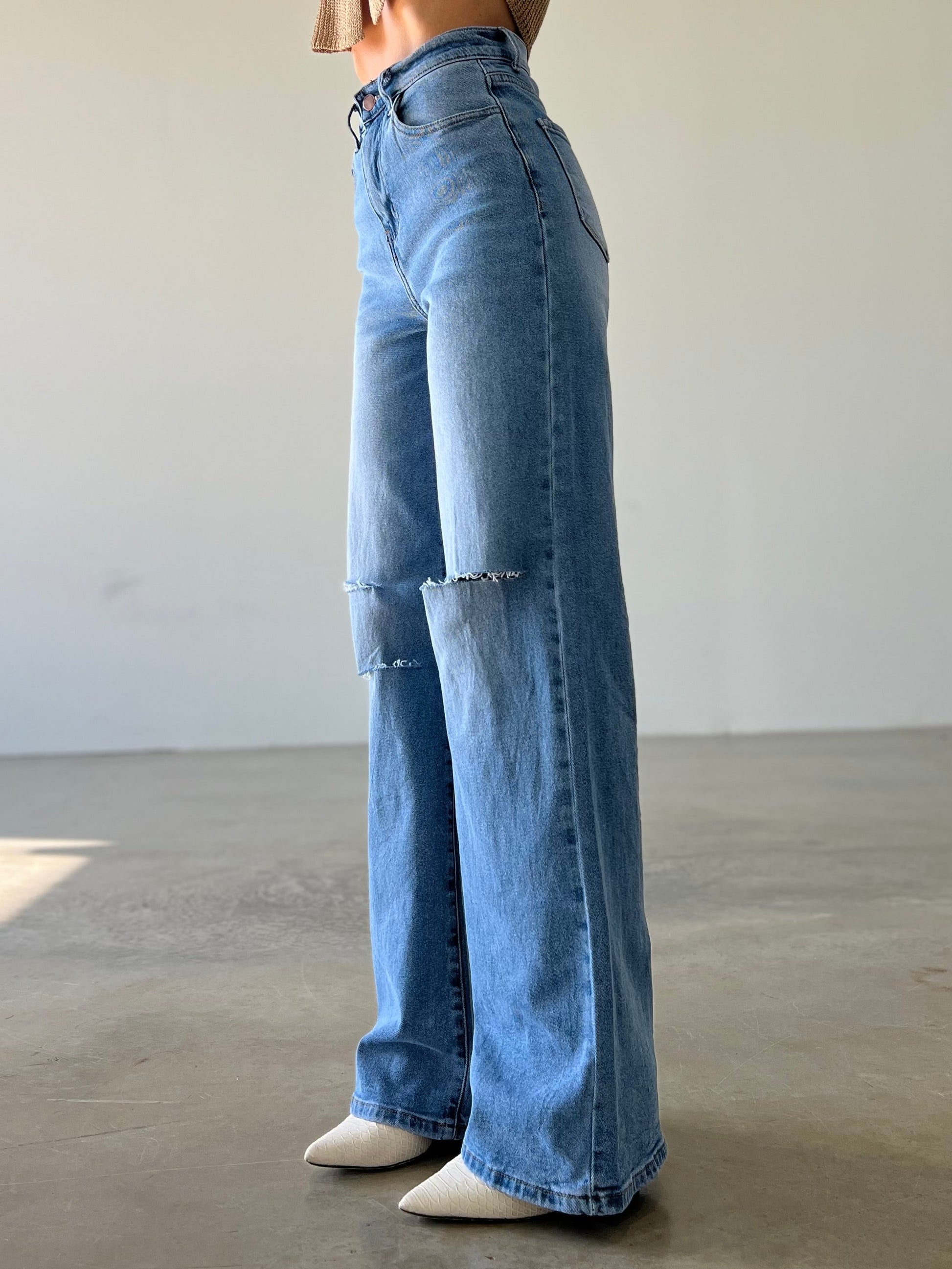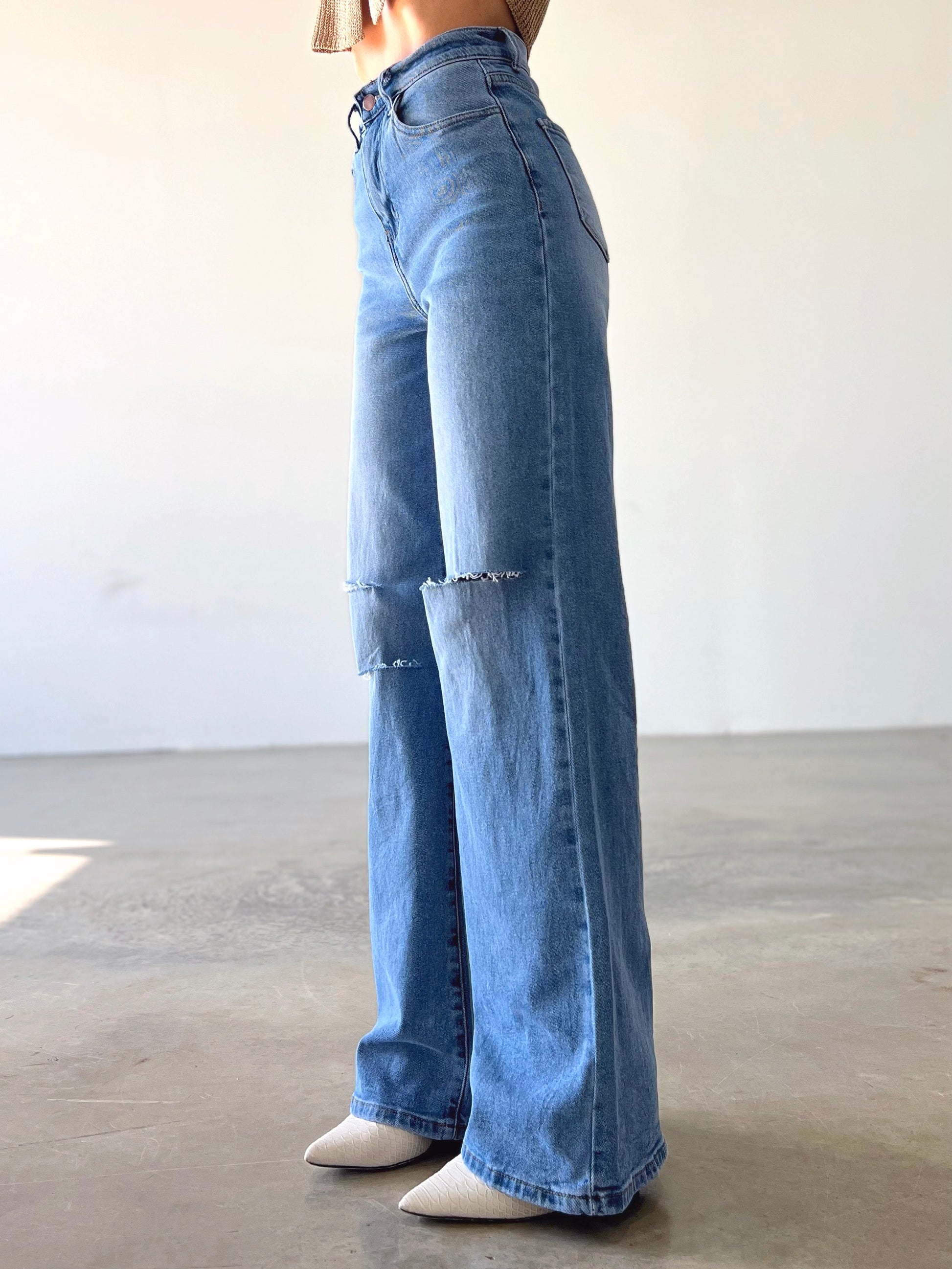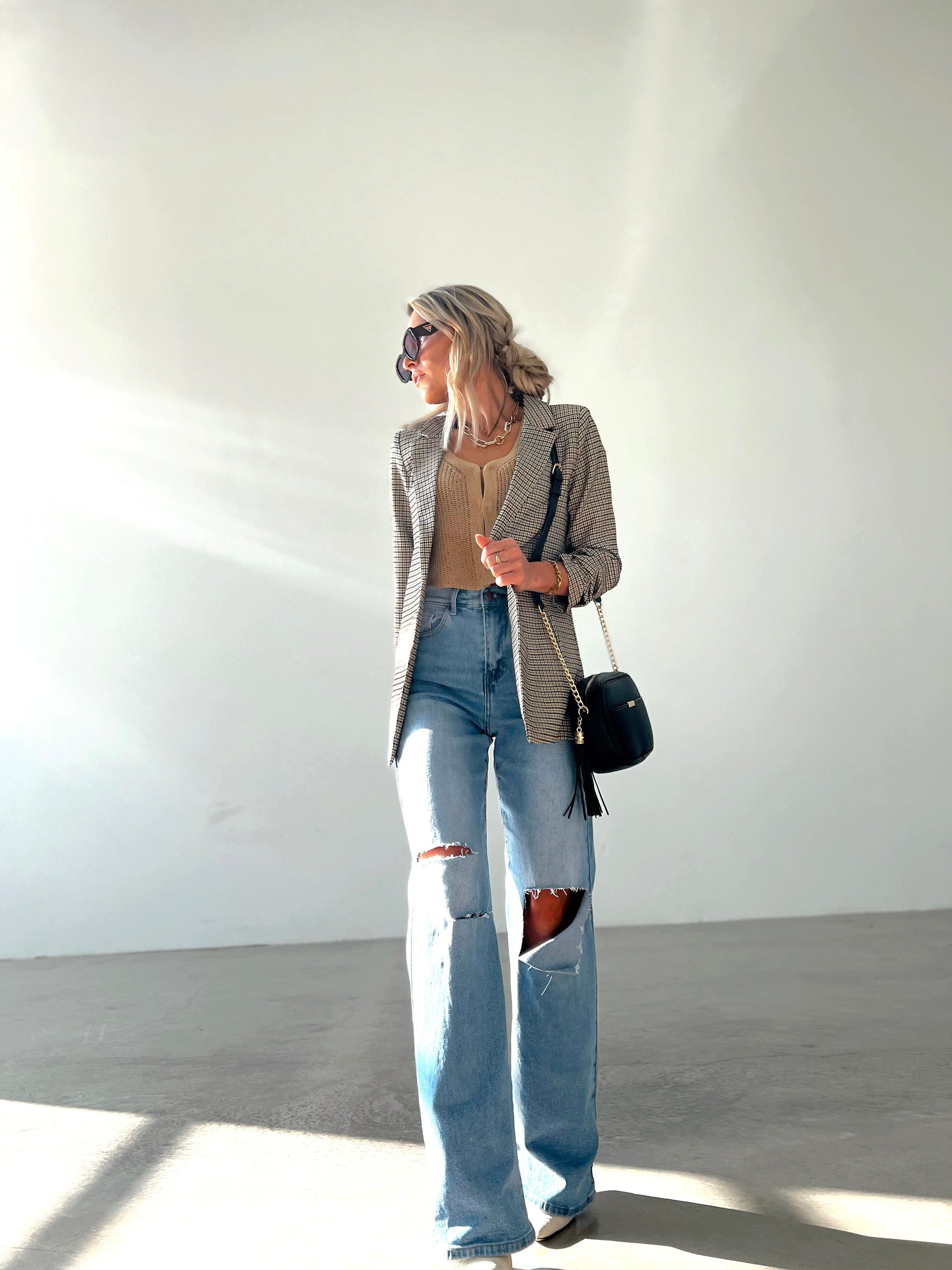 These distressed straight leg jeans feature a relaxed fit with just the right amount of edge. Designed for everyday styling, they’re the perfect mix of classic denim and laid-back attitude. Featuring a 35" inseam - they're tall girl friendly too.