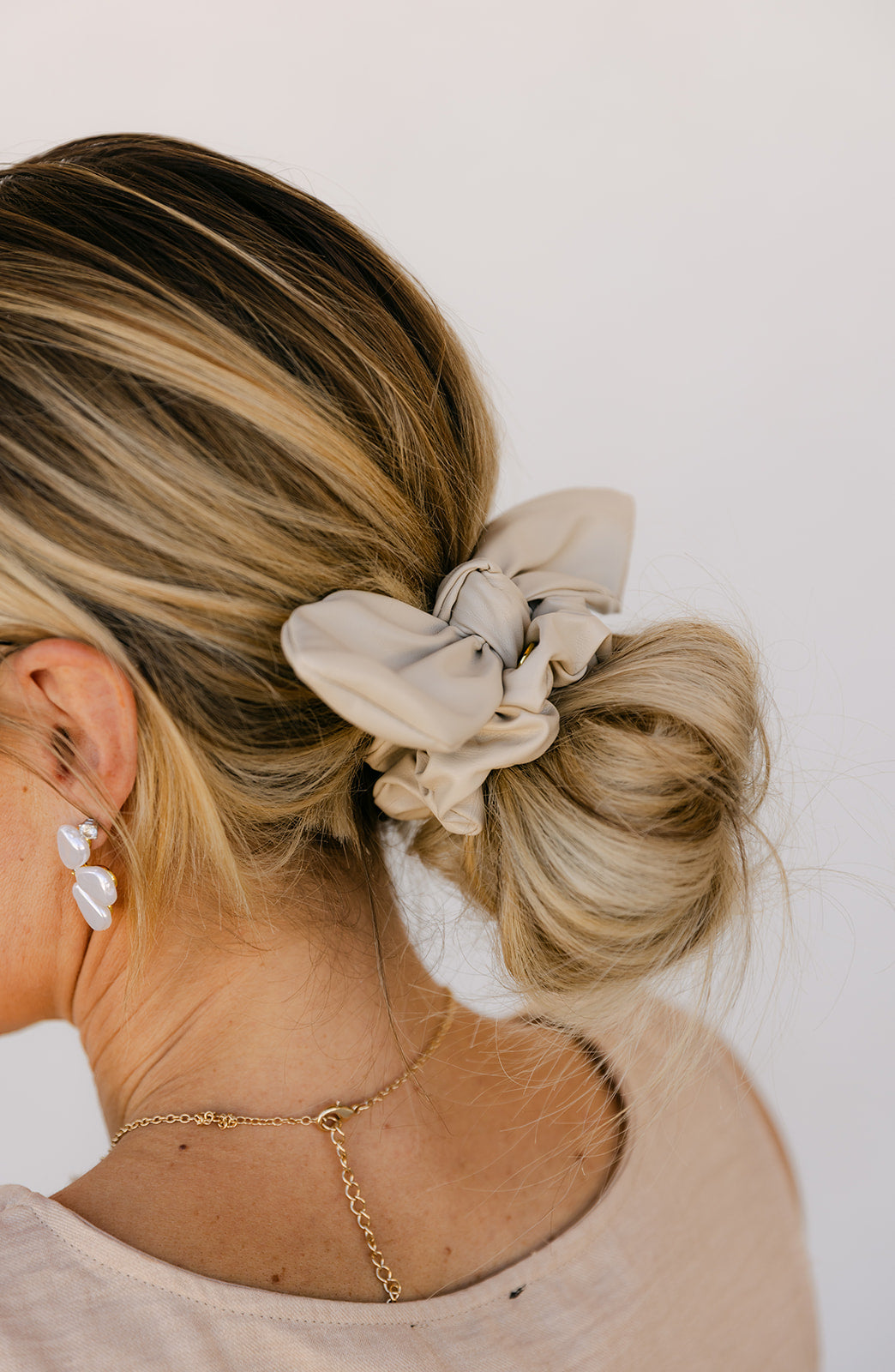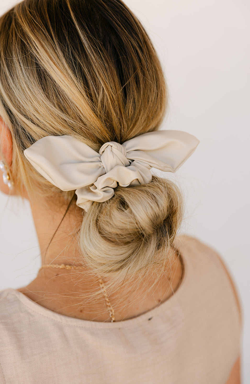 Enhance your hairstyle with our Leather Tie Hair Scrunch! Crafted with a durable leather tie design, this hair scrunchie adds a touch of style and functionality to any look. Perfect for keeping hair in place and adding a unique touch to your outfit.
