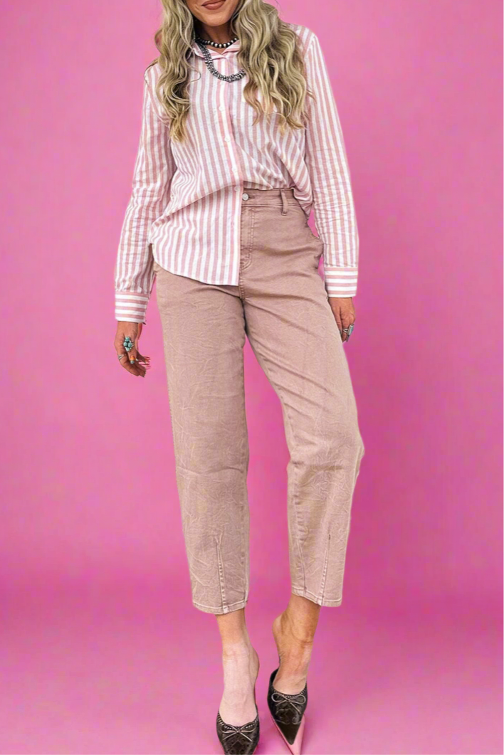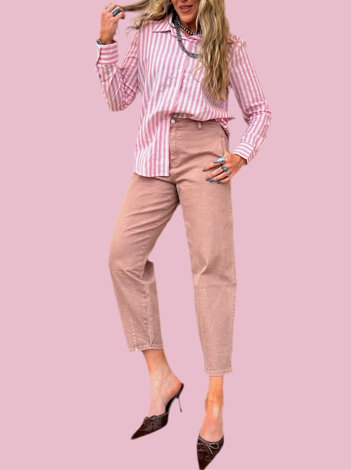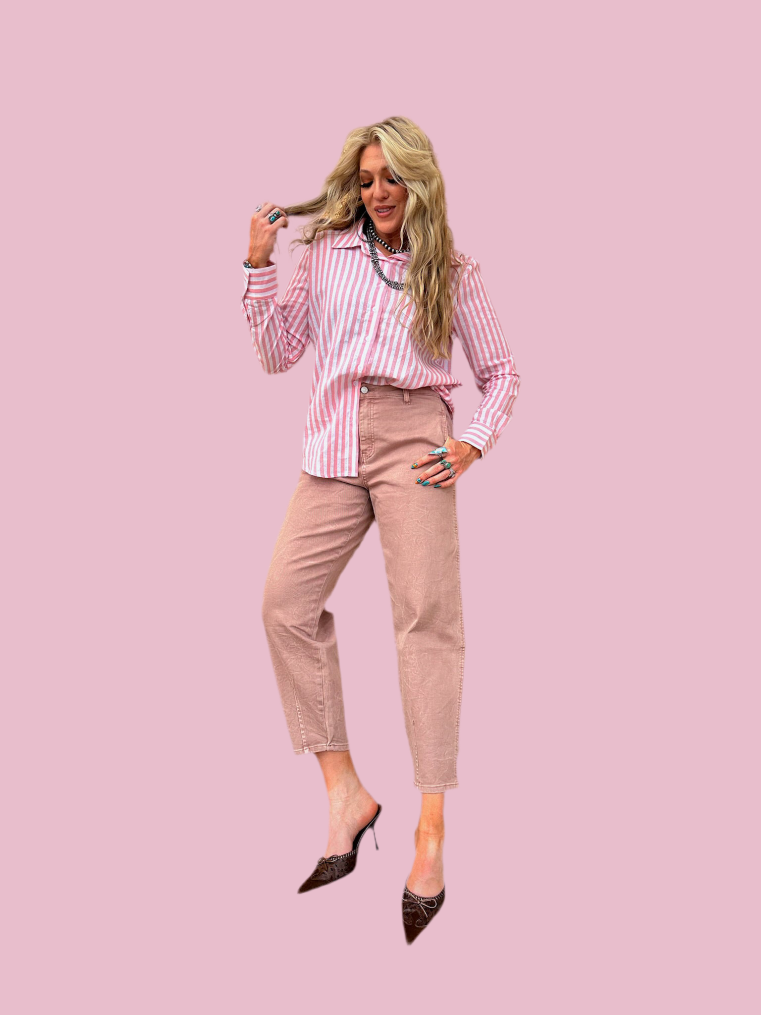 We heard barrel jeans are in, and we’re bringing you the perfect color for spring.