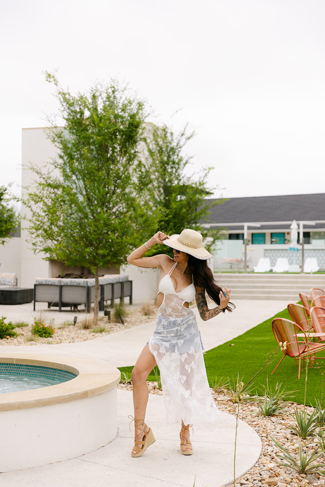 Delicate and breezy, this lace coverup is designed to layer with ease. Featuring side cutouts and a deep slit, it’s the perfect throw-on piece for beach days, poolside lounging, or vacation strolls.