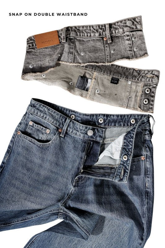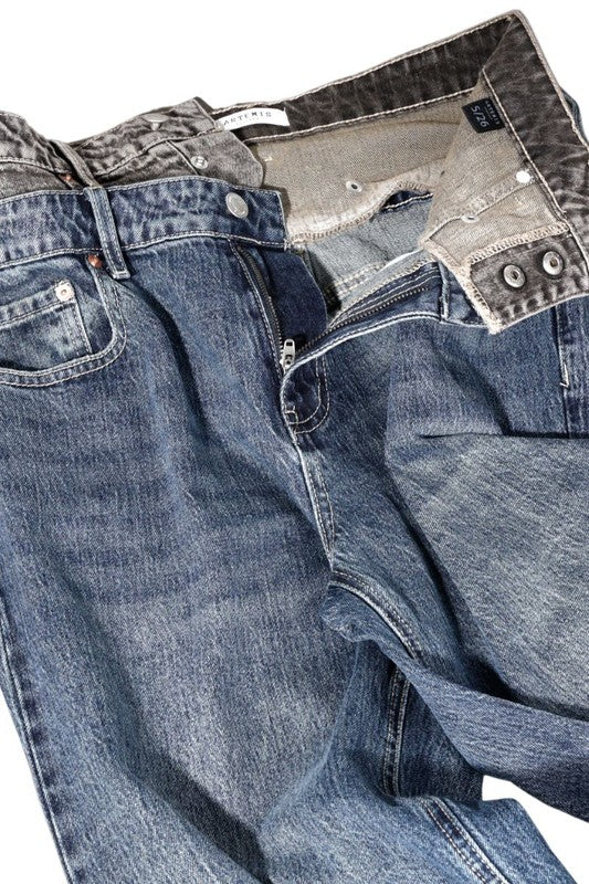 Two-in-one denim? We're here for it. This design seamlessly blends fashion with practicality, featuring a clasp-top half that can be easily removed or attached, allowing users to customize their jeans to suit any occasion or style preference.