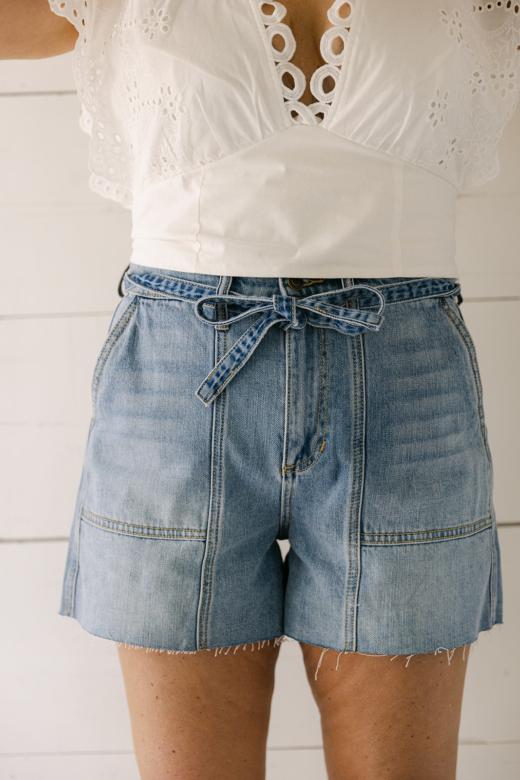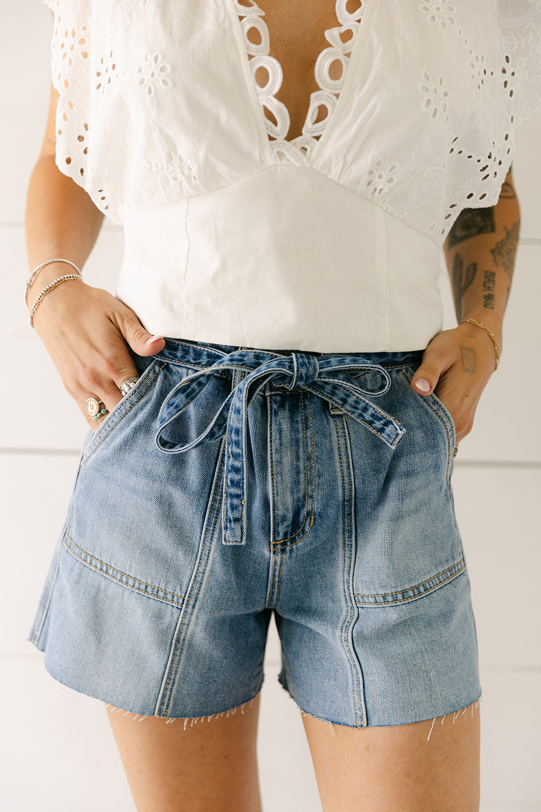 Put a fresh twist on your summer staples. These high-rise shorts feature a flattering tie waist and raw cut hem for an easygoing, contemporary vibe. Designed too sit comfortably at the waist, they blend structure with softness- perfect for dressed-up or casual weekends.ย