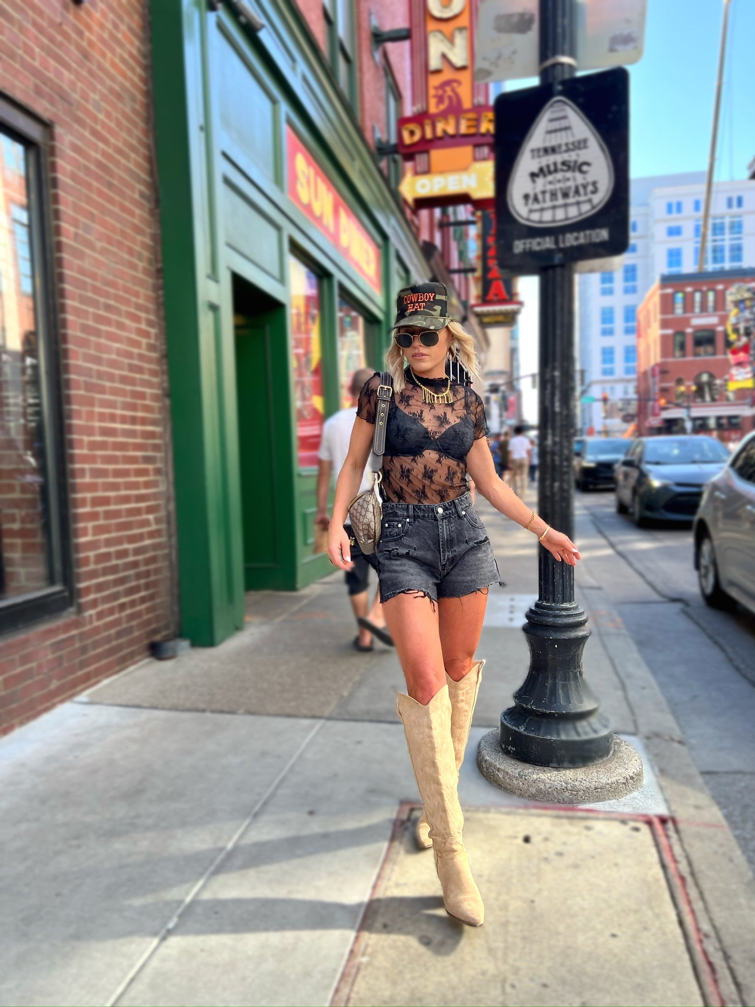 Short sleeve black lace see-through top, perfect for layering.