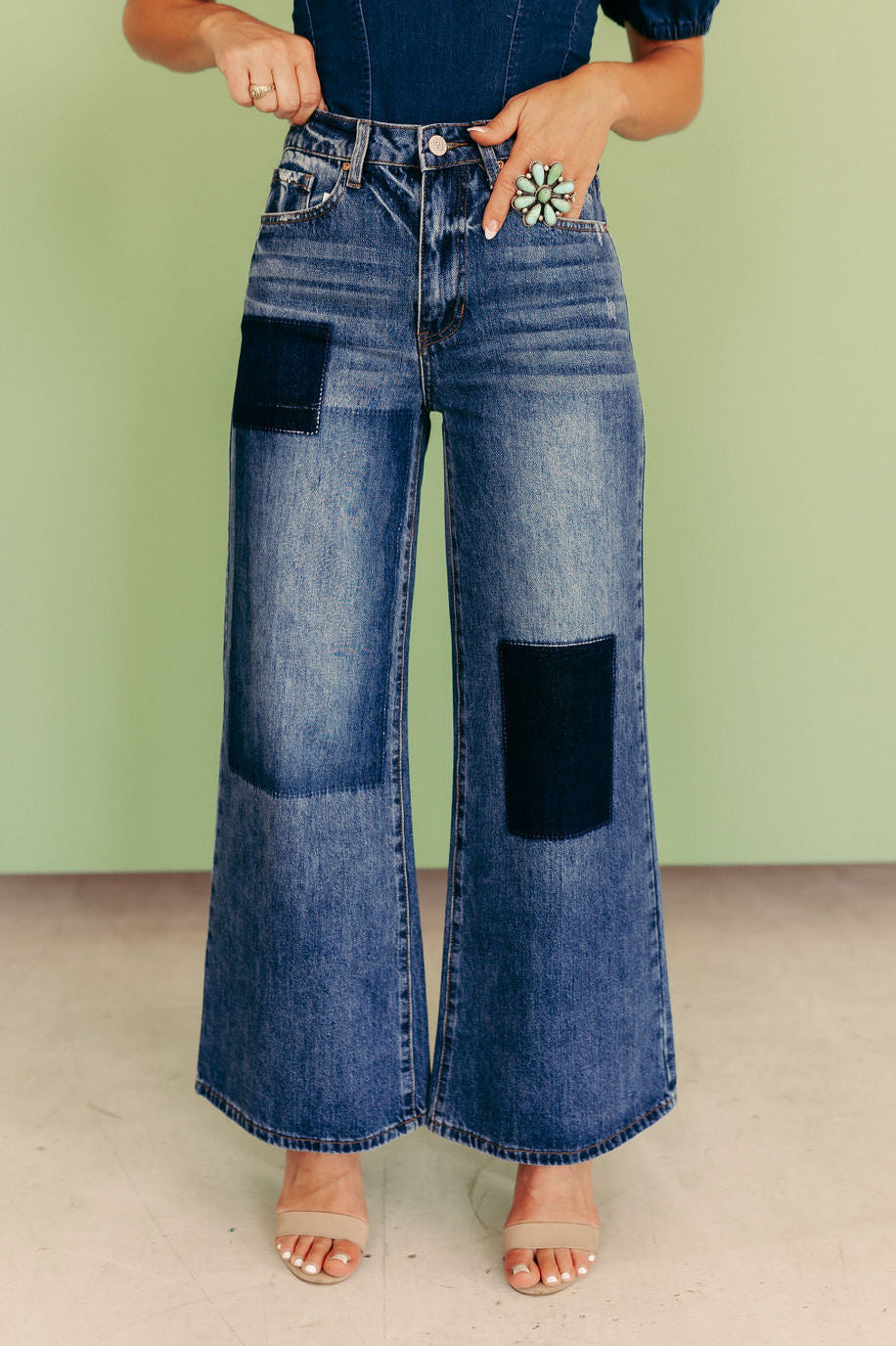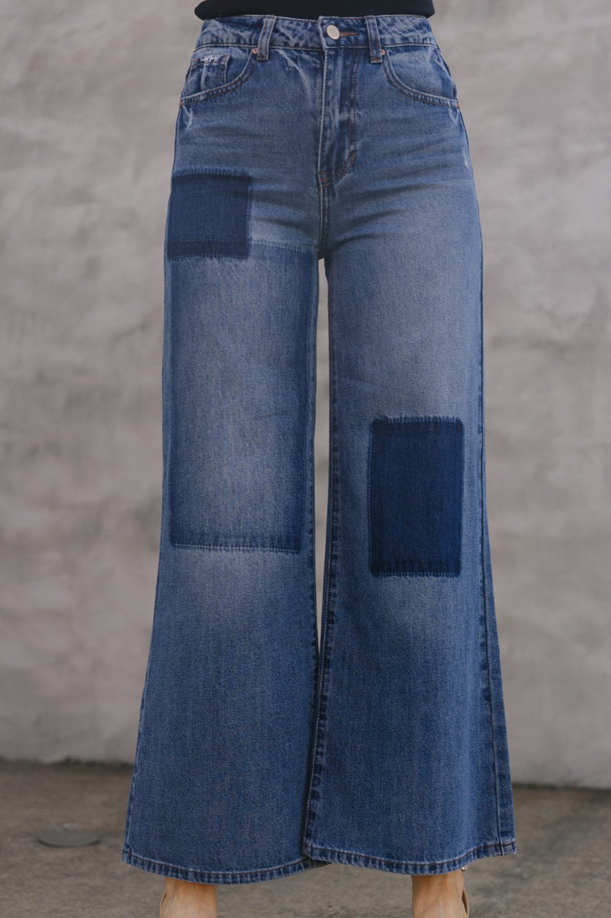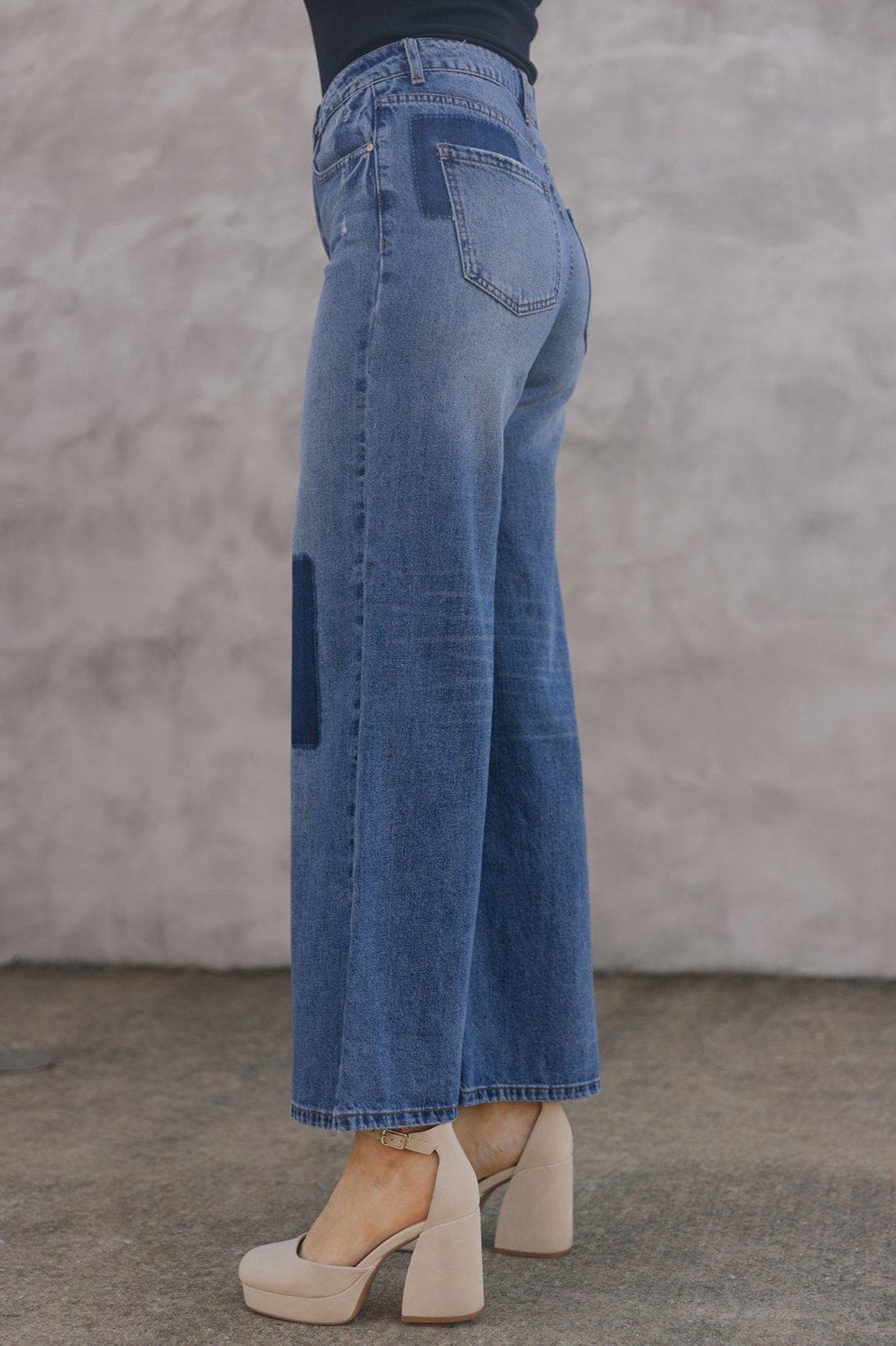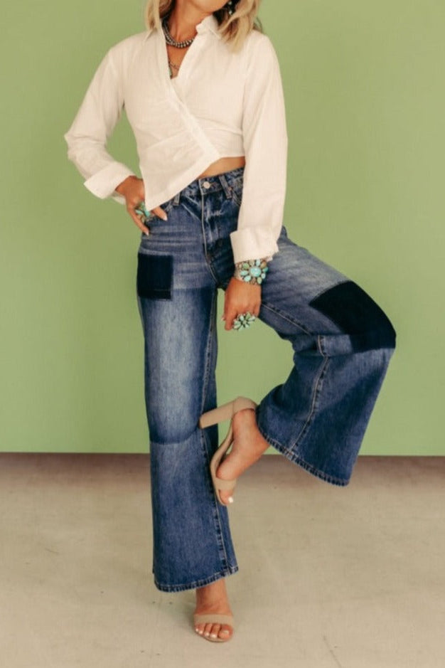 These high-rise patchwork trouser jeans feature a wide-leg, cropped silhouette with ultra-soft stretch for all-day comfort. Finished with functional pockets and a classic hem, they’re the perfect mix of casual and chic.