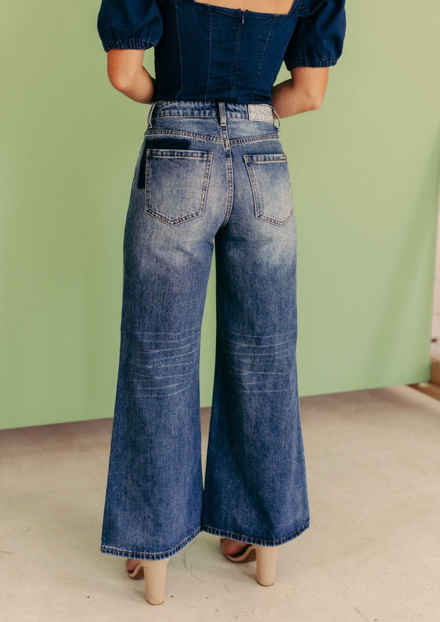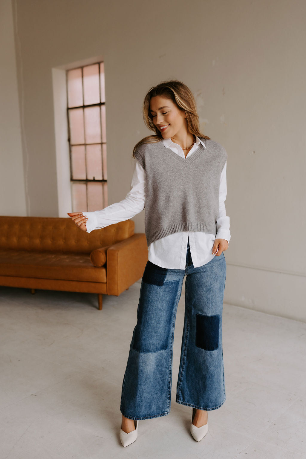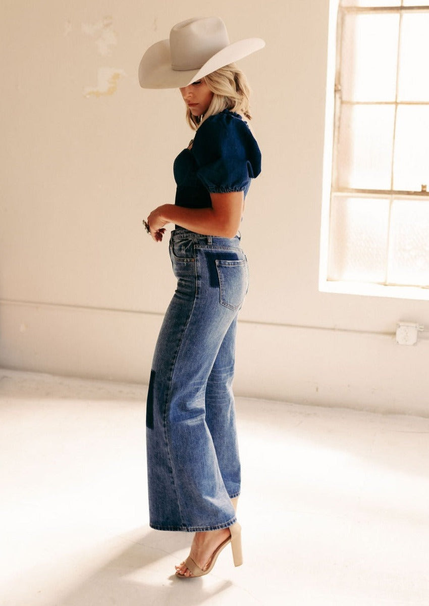These high-rise patchwork trouser jeans feature a wide-leg, cropped silhouette with ultra-soft stretch for all-day comfort. Finished with functional pockets and a classic hem, they’re the perfect mix of casual and chic.