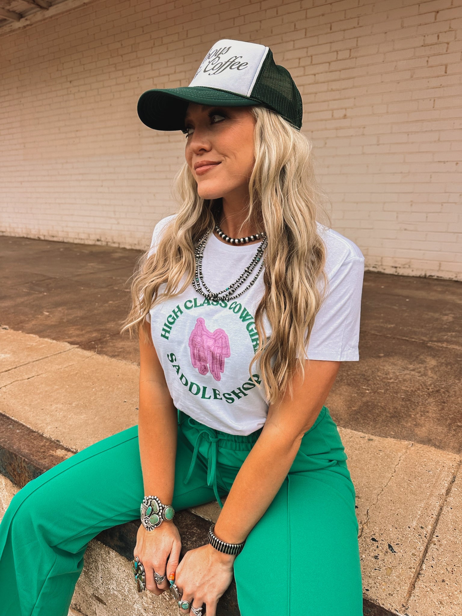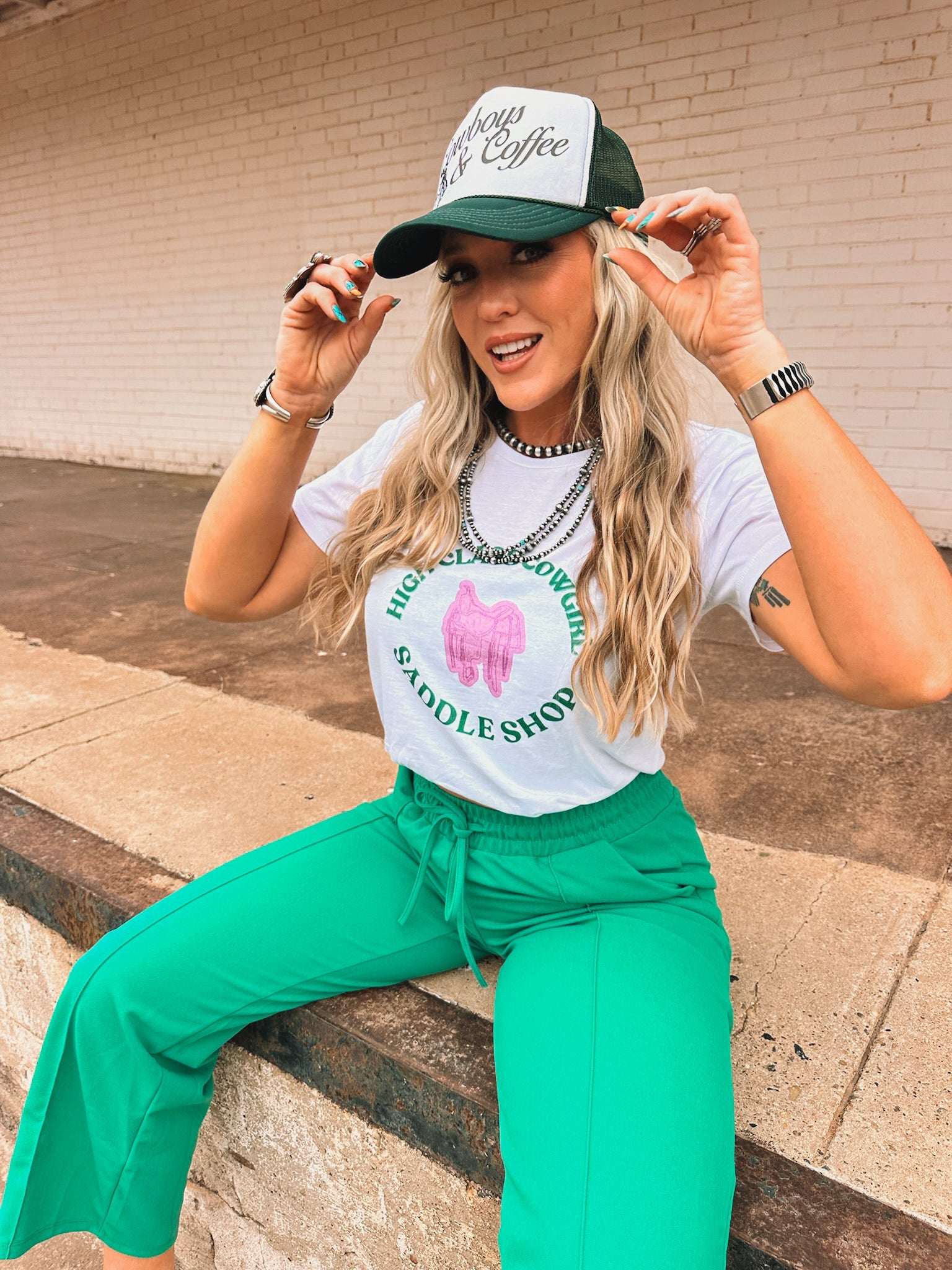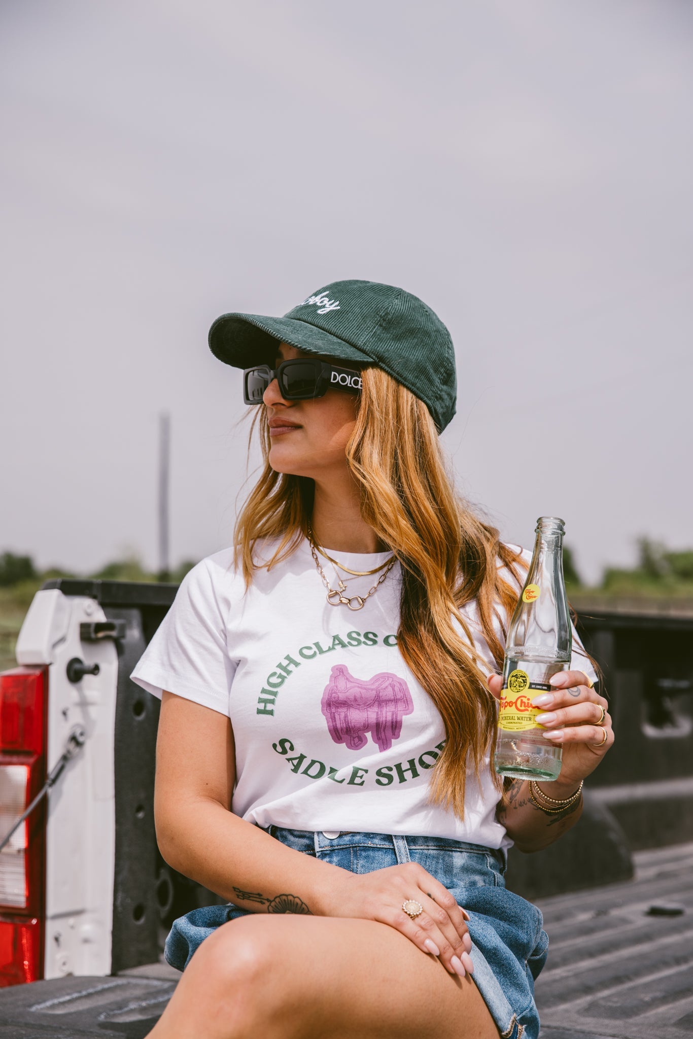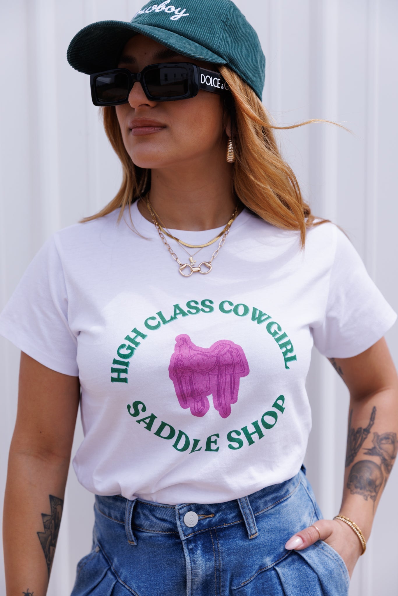 Hop in babe, we're going to the saddle shop. Made of 100% combed and ring-spun cotton, this baby tee is ultra soft and super comfy.