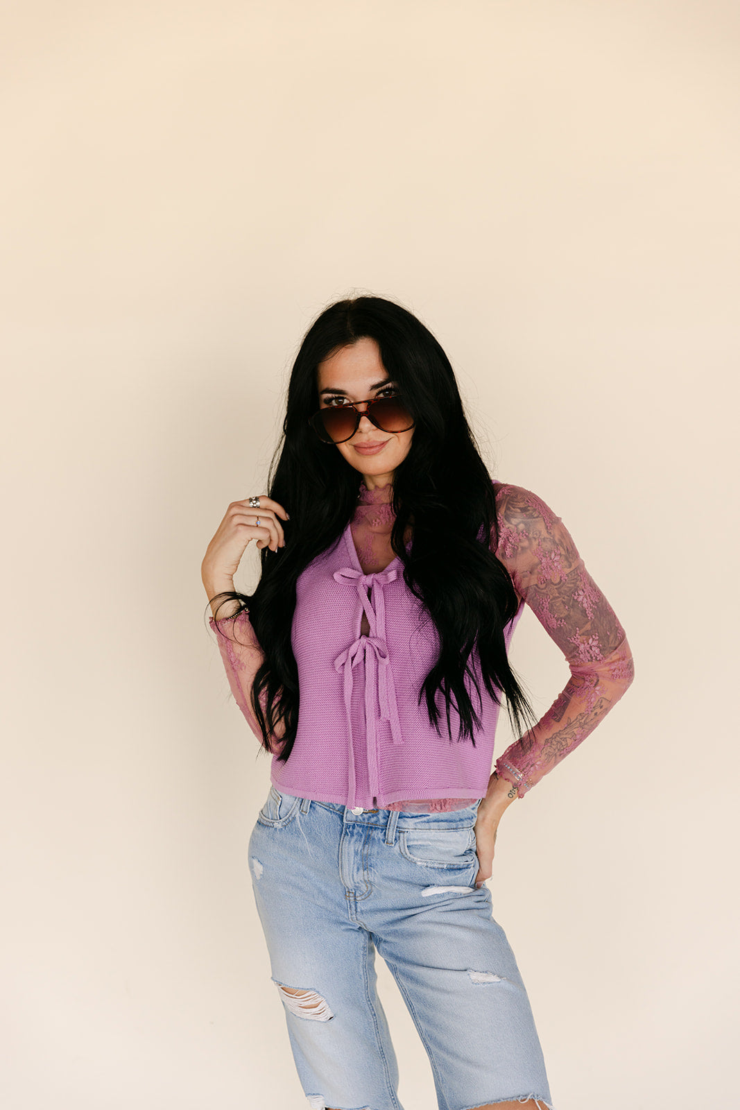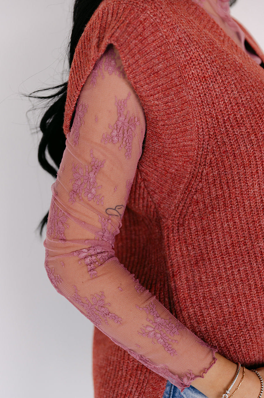 Intricate floral lace overlays soft mesh in this lightweight, layer-friendly top. An eye-catching piece that adds to any look.
