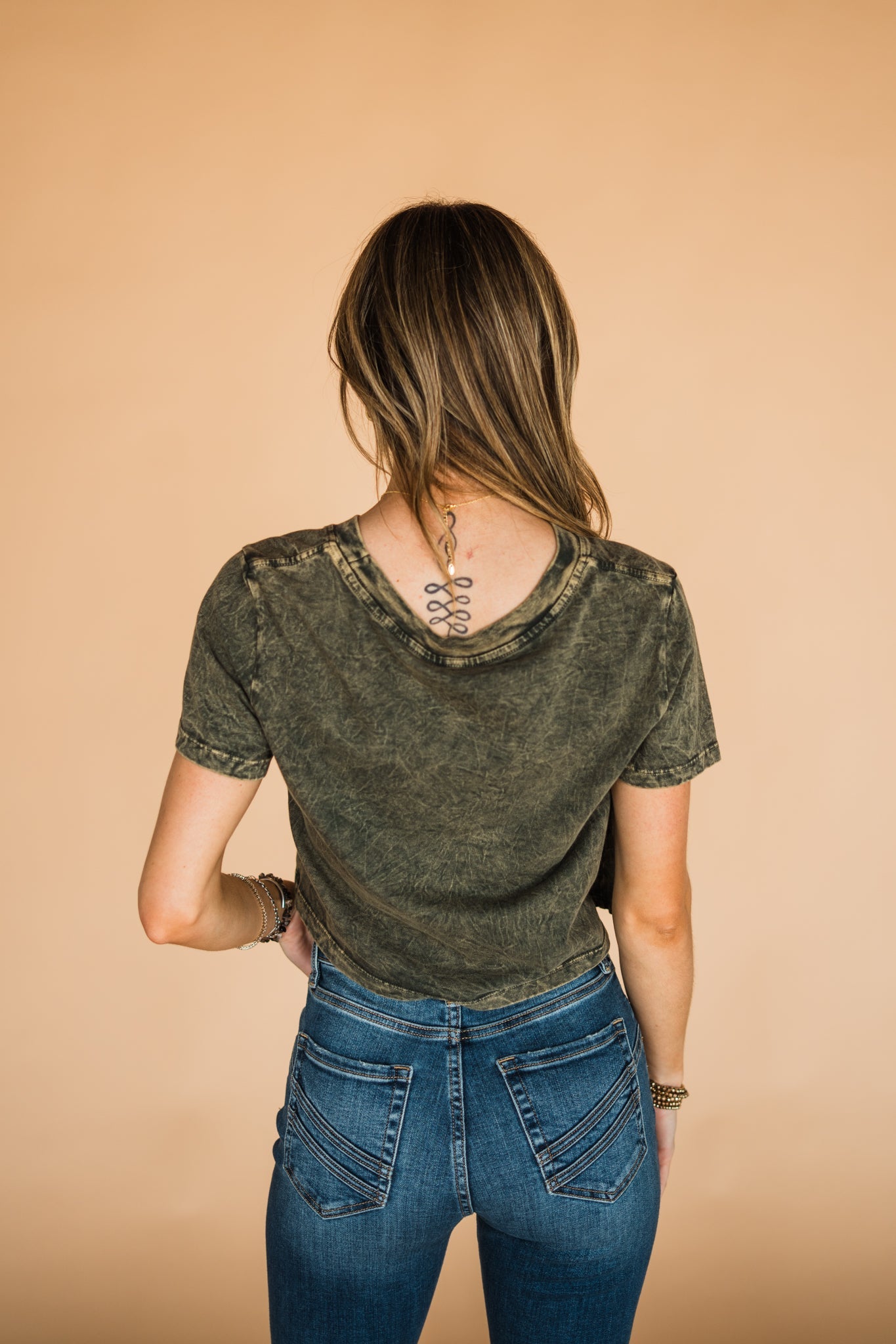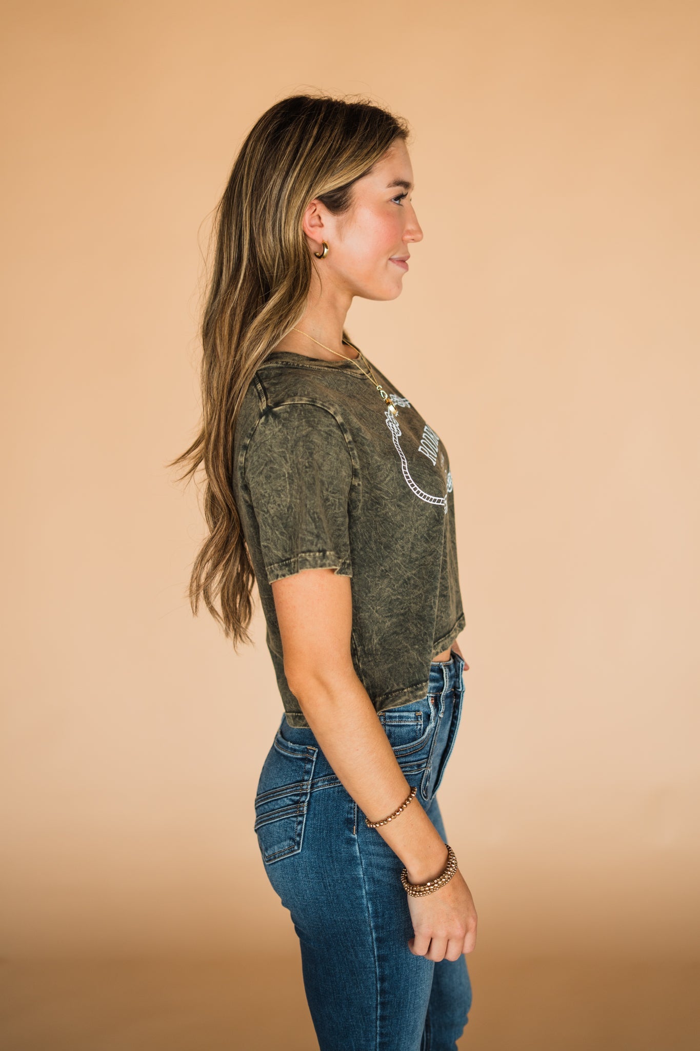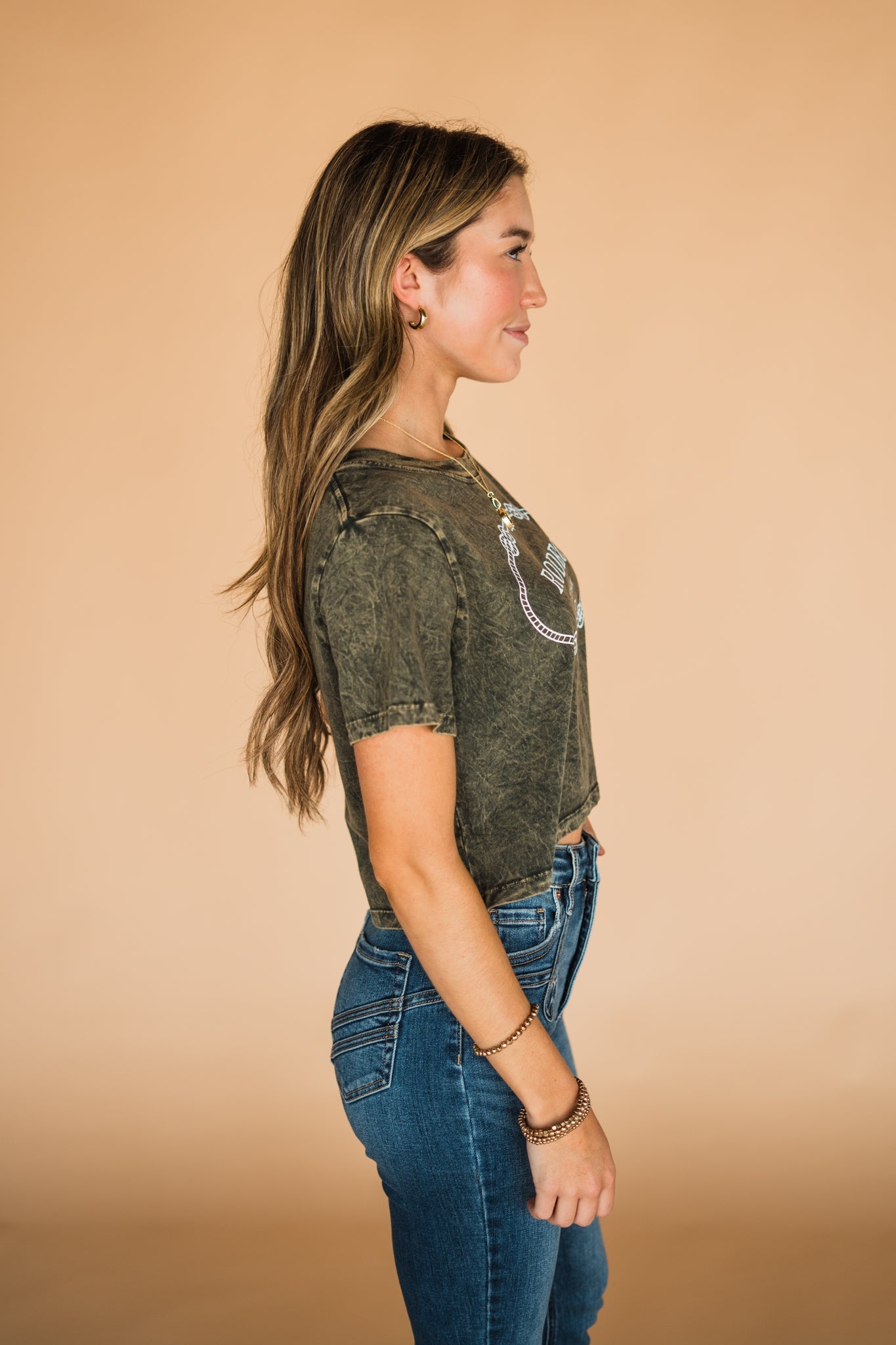 jaWomen’s cotton graphic cropped tee with an authentic retro look featuring soft fabric by adding a mineral wash processed look.