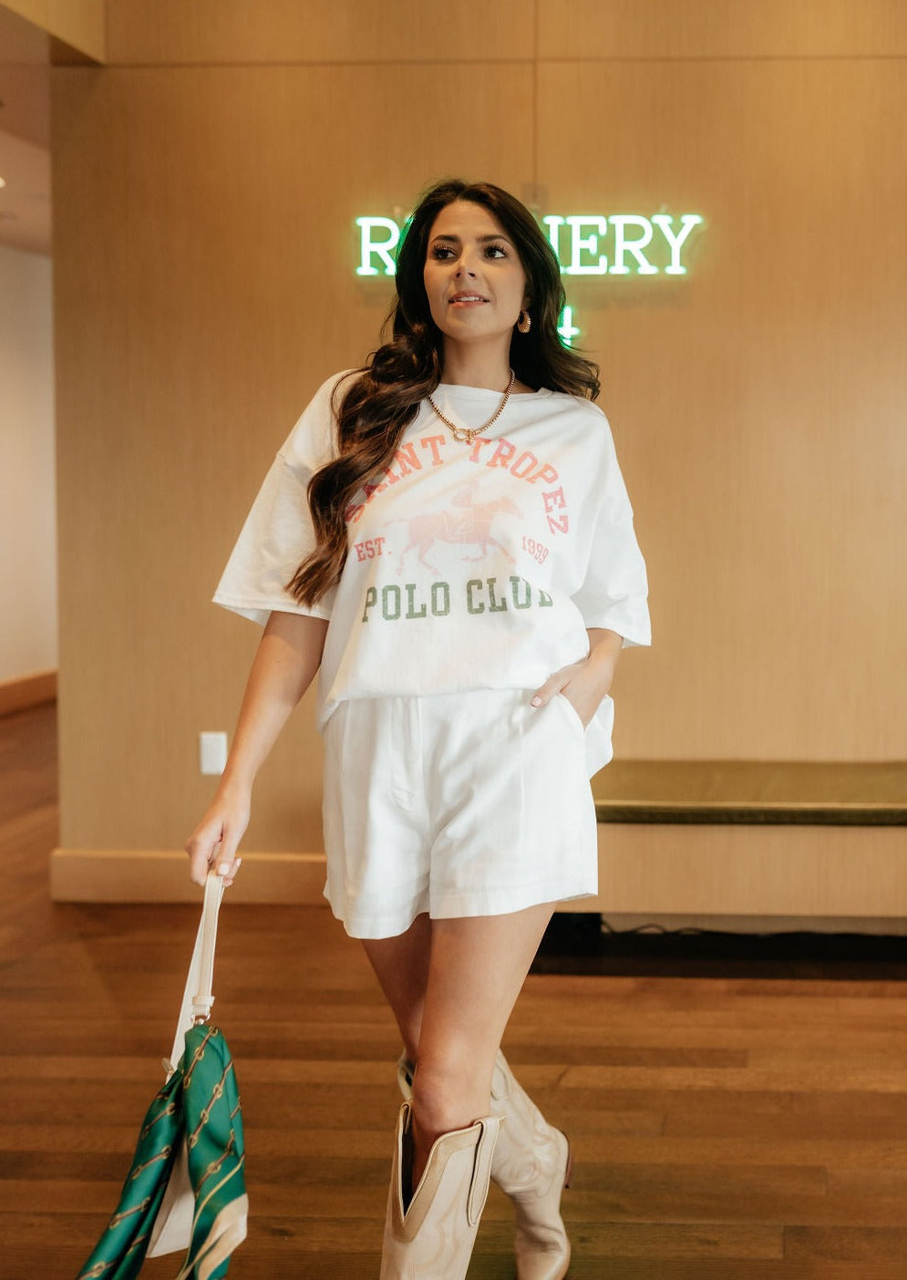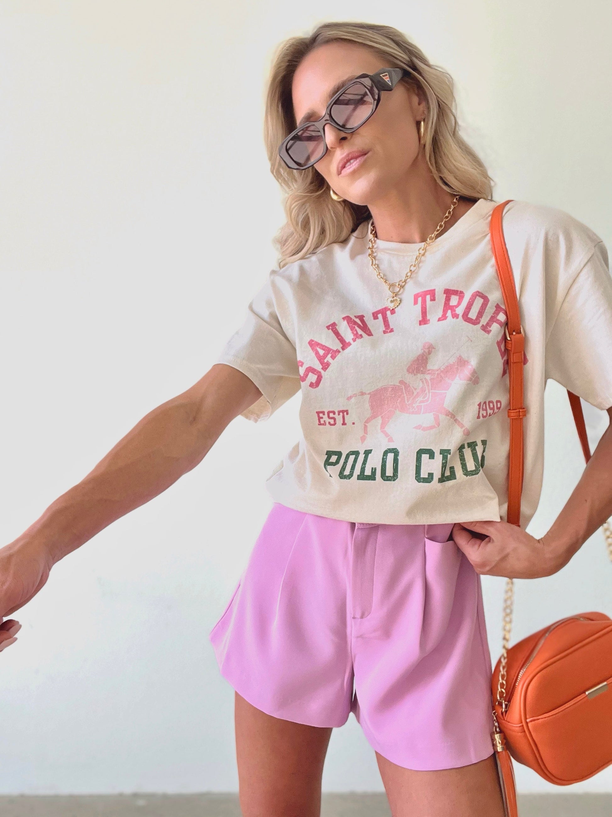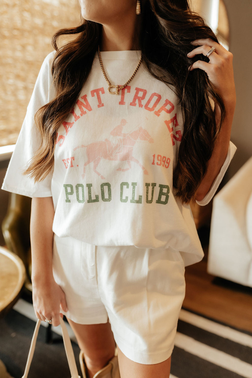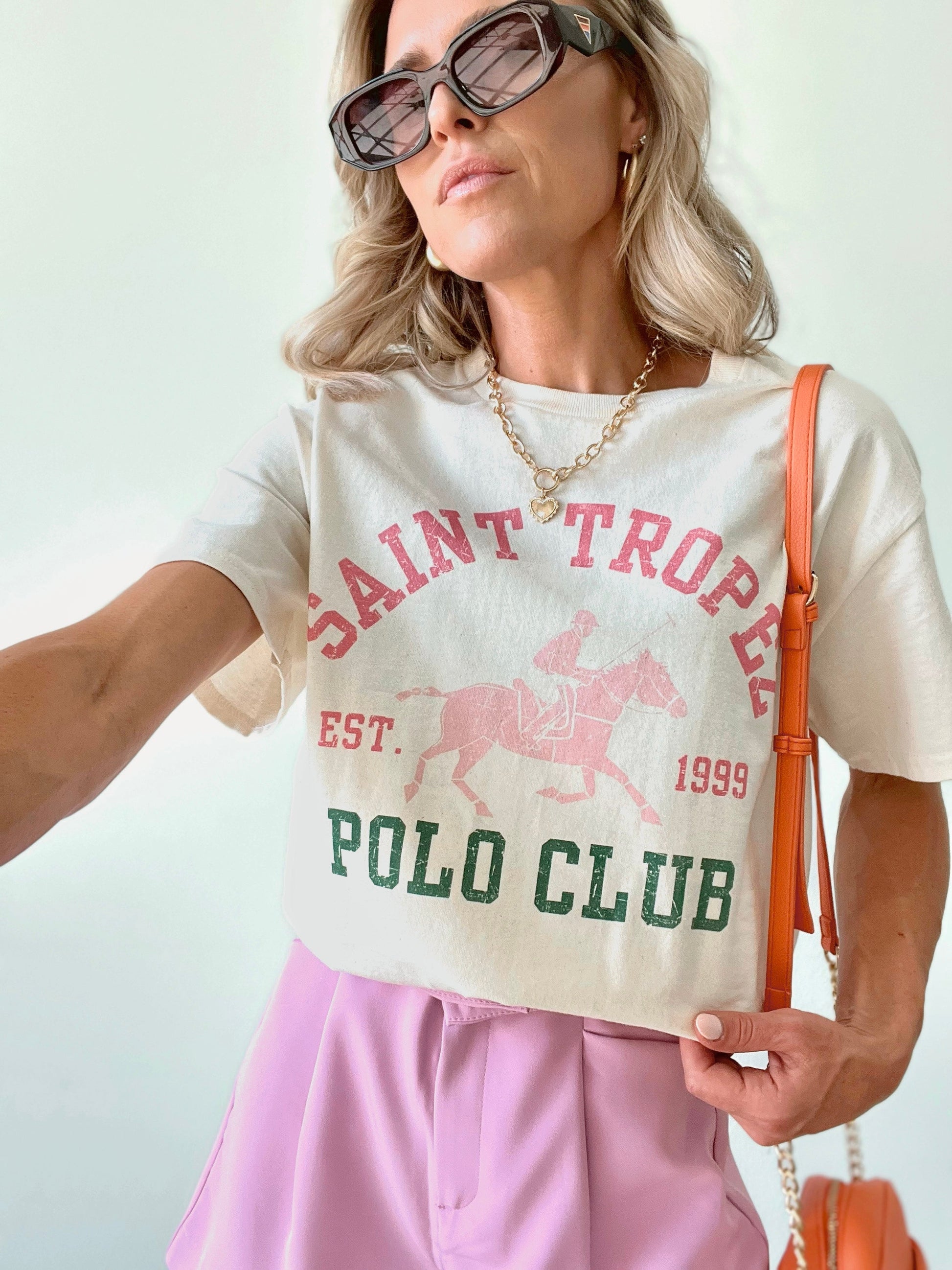We love an oversized-fit graphic tee and this one is no exception. Perfect for bringing a pop of color into your look, The Saint Tropez Graphic Tee blends casual tee with "polo club" class.