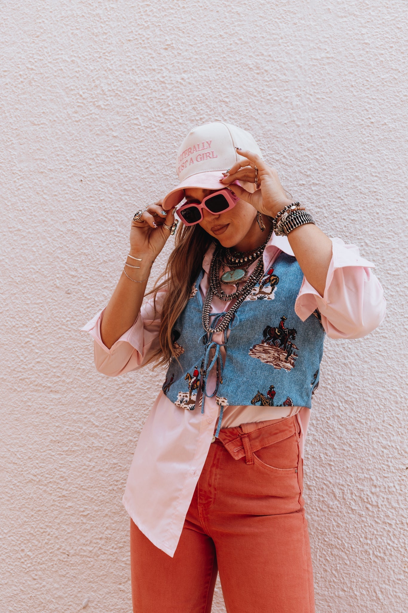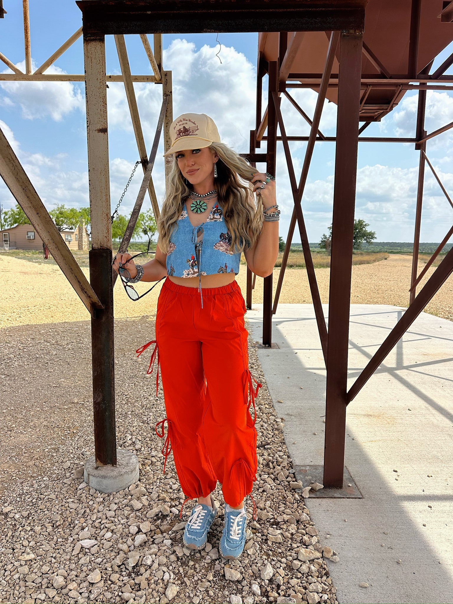 This cutie 'lil wild west printed tie-front vest adds a colorful pop of western style to any look. Wear it layered or wear it alone - the styling possibilities are endless.